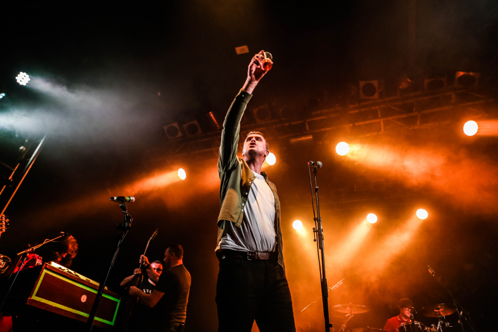 It was a joyously raucous crowd filling the Electric Ballroom last night, well lubricated with alcohol. Reverend & the Makers were little late onto the stage, but as the crowd became restive the DJ’s well-judged play of Don’t You Want Me placated them. At the opening chord of The State of Things, with man and band finally on stage, the pints were positively flying. It was poetry in motion. As the mosh pit writhed and pogoed, the Rev declared, “We’re bouncing from start to finish. Anyone falls, you pick them up.” This community spirit was demonstrated when a guy in a group of pint-downing mates lost his glasses and the mosh pit found them.