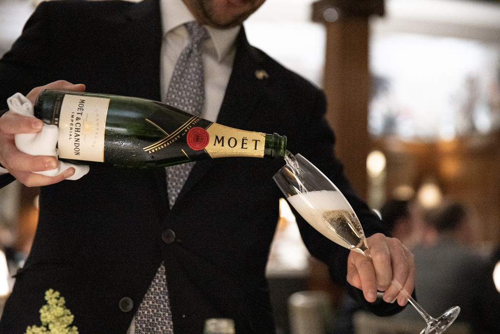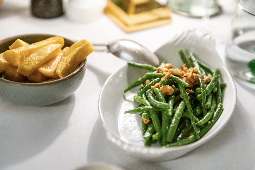 We sit at a table overlooking the elegant dining room of this Mayfair classic five-star establishment. Tonight’s clientele is not the most electrifying – mostly rich men over 50s with either little or grey hair – but the vibe is still alluring and a glass of champagne is the perfect way to begin dinner.