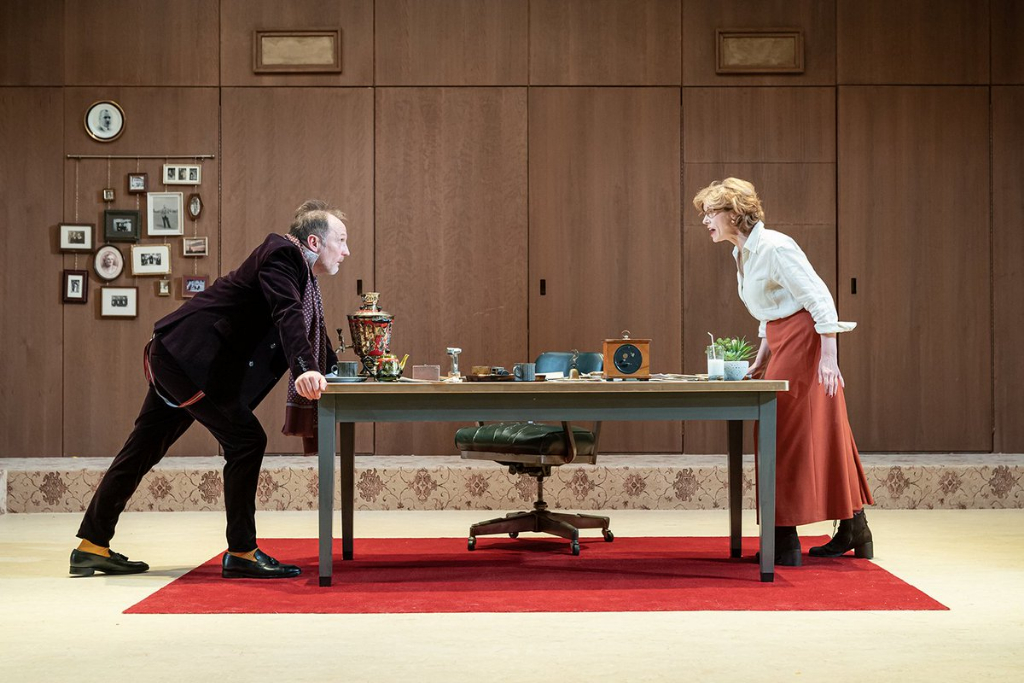 There is plenty of crossover between the TV hit and the Almeida’s latest production. Both focus on family dynasties and crumbling industries, filtered through the life-warping pull a matriarch or patriarch has on their children. In Gorky’s play the titular Vassa (Siobhán Redmond) is waiting for her husband to die, paranoid about prying ears and the vultures coming home to circle the soon-to-be corpse.