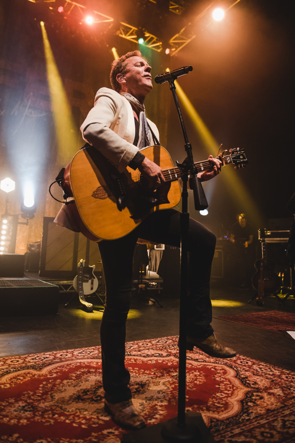 Sporting a classic cowboy hat and classy white blazer, Kiefer Sutherland opens the night at the Shepherd’s Bush Empire with Rebel Wind. The Canadian actor takes the stage for a memorable country gig marking the end of his tour Reckless and Me. Pairing his low, husky voice with vigorous guitar from start to finish and dotting his show with anecdotes and jests about the inspiration for his lyrics and his past family life, Sutherland proves himself as not only a talented musician but also an engaging performer.