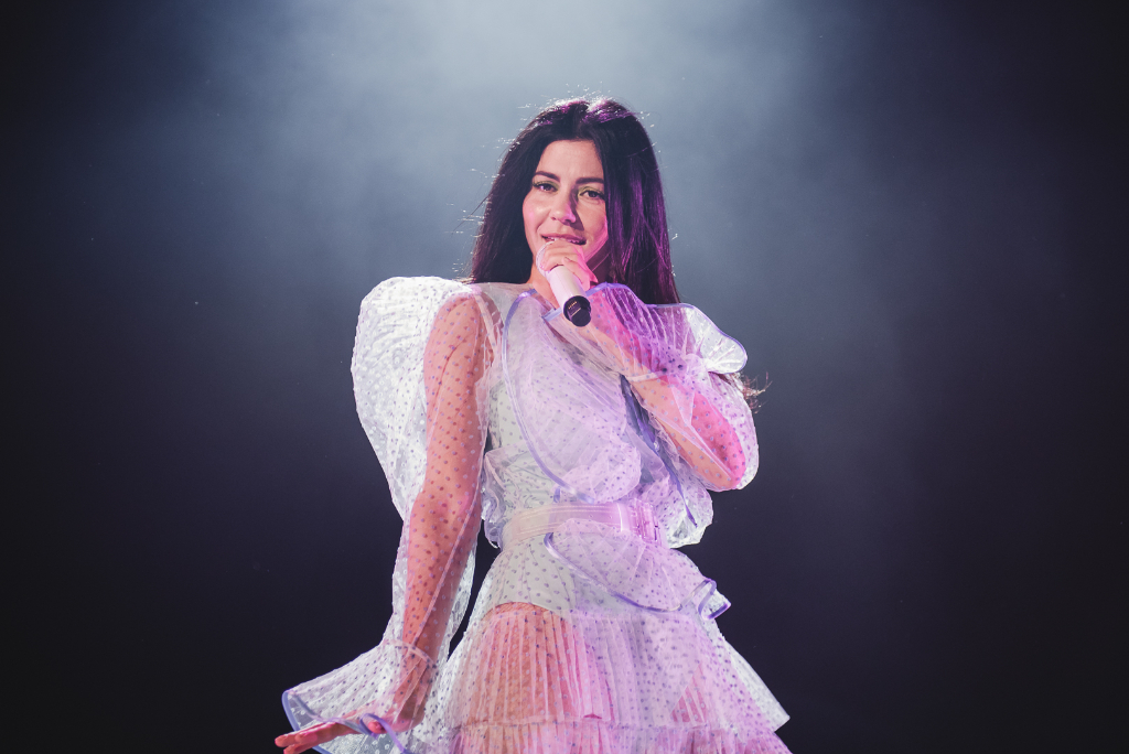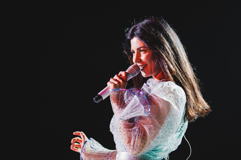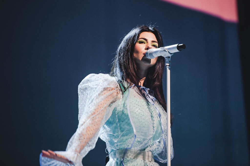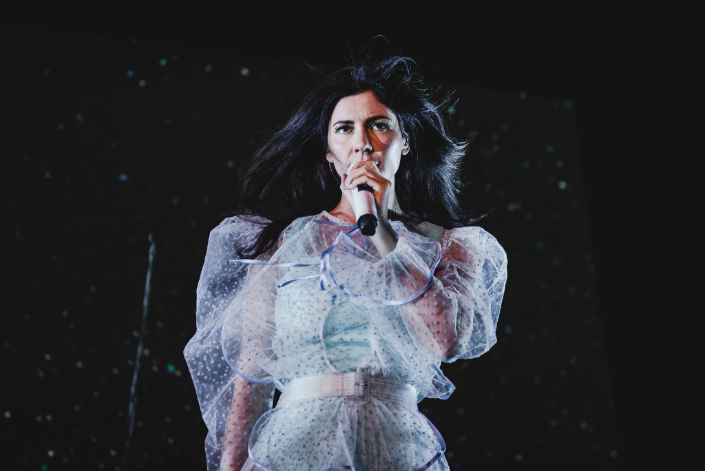 Striding onto stage dressed in a sheer ultramarine dress, MARINA (aka Marina Diamandis) opened her first-ever show at Hammersmith’s Apollo last night to rip-roaring applause that practically shook the roof. It’s been a long three-year wait for the ever-loyal fans of this undisputed pop icon, with the latest album released in April this year. But in a performance that lived up to the star’s cult status, MARINA proved herself to be worth the wait.