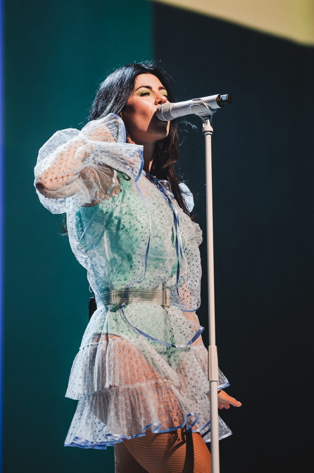 The artist closed the first half of her performance with Teen Idle, which the crowd shouted back at her at every opportunity. As the performer reemerged in a bright green and black jumpsuit, we were welcomed into the second half: Fear.