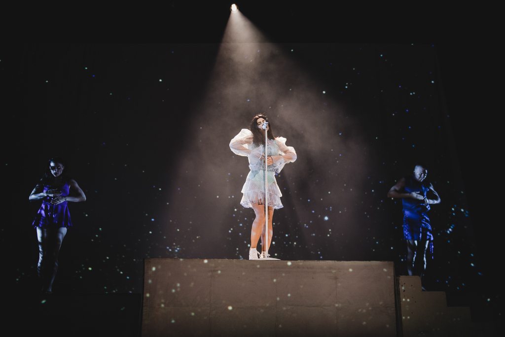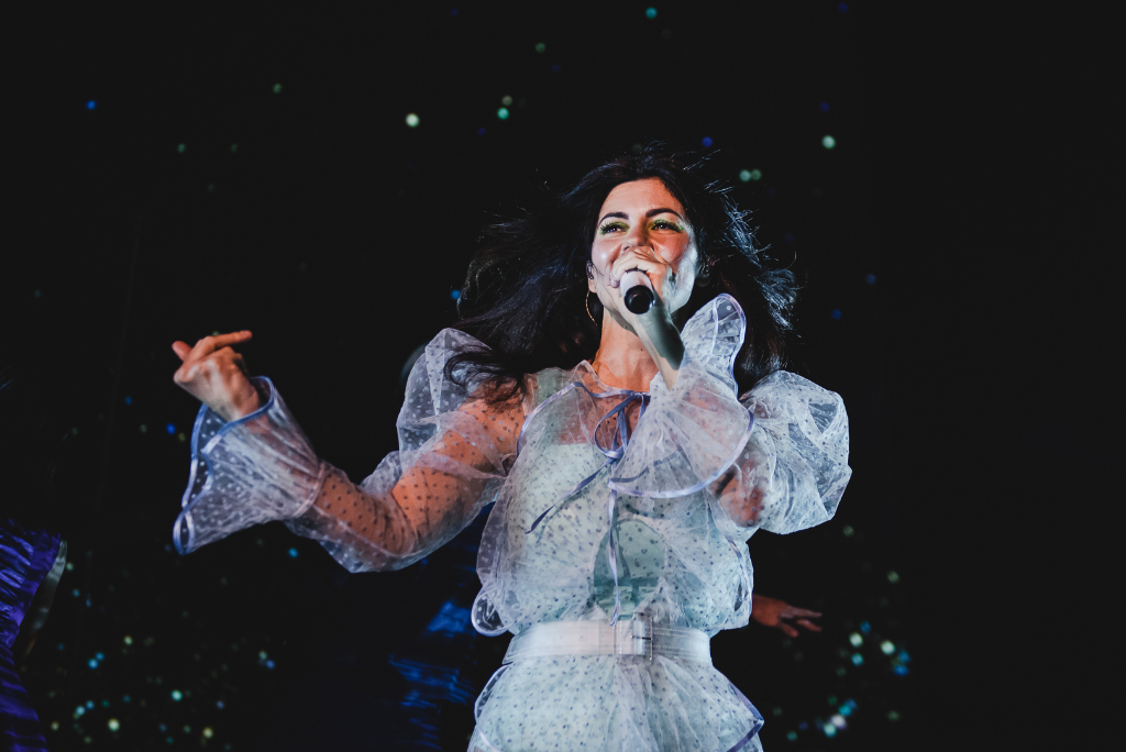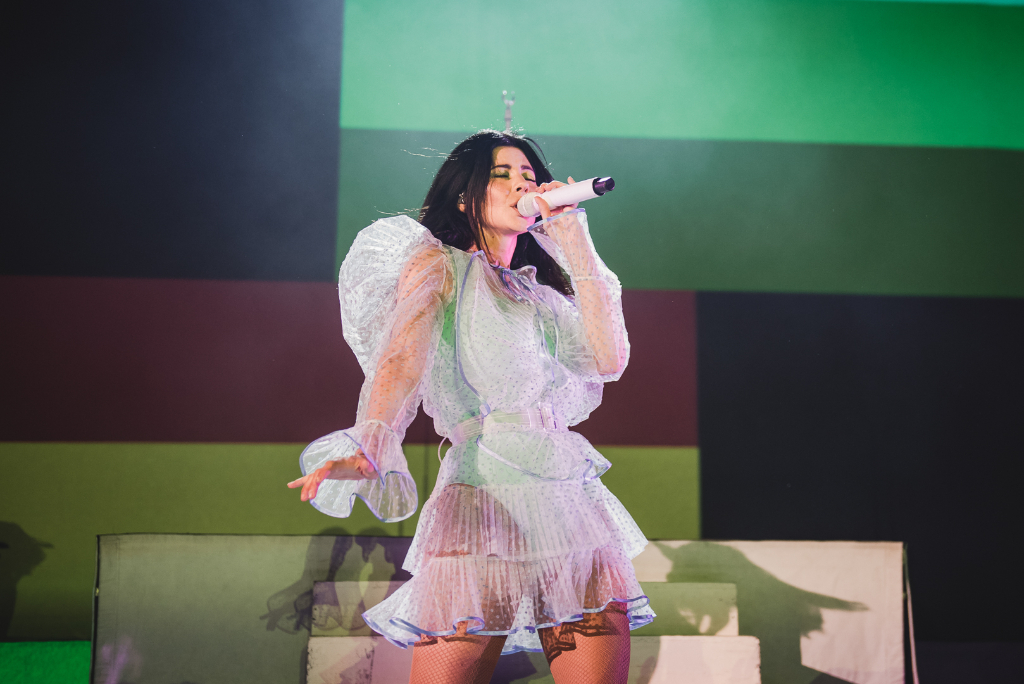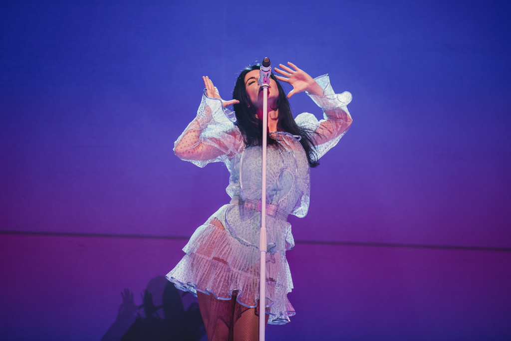 With a decade’s worth of music to choose from, this setlist came in two halves. Named after the new album Love + Fear, the show delivered a perfect blend of fan-favourites and dynamic new material. Handmade Heaven was the perfect starter, made up of ethereal melodies and captivating choruses; the audience got what they came for in the very first song. Earlier hit Hollywood then followed, ironically just as relevant today as in 2010 with the lyrics, “I’m obsessed with the mess that’s America”. It’s an irresistible, catchy anthem that showcases the singer’s ability to traverse her old and new styles with ease and confidence.