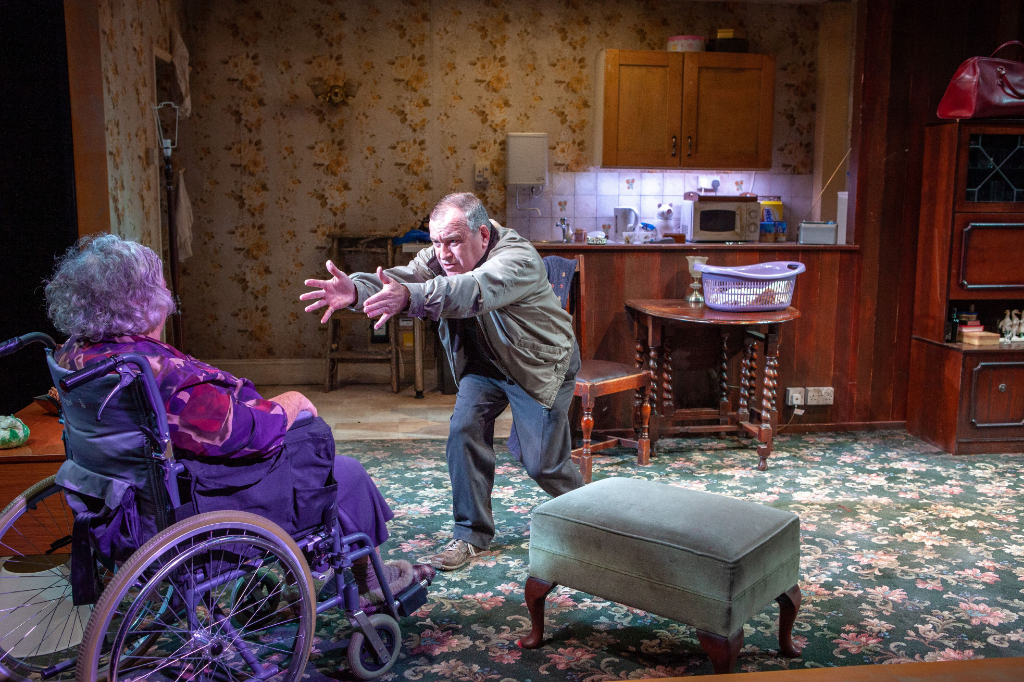 The action takes place in an East London flat that oozes a suffocating claustrophobia, thanks to a beautifully detailed, naturalistic set design by Max Jones and Ruth Hall. Confined to a wheelchair, Nell (Miriam Margolyes, in a role she was born to play), is dependent on her son Sydney, not that she’d ever care to admit it. Reluctantly caring for his mother, Sydney (Mark Hadfield) hopes to inherit the property after her death, but she has other ideas. The two utterly despise one another and revel in making offensive and cruel jibes. Exploring motherhood, loneliness, fear and guilt, it’s a multi-layered piece effectively executed by its talented cast.