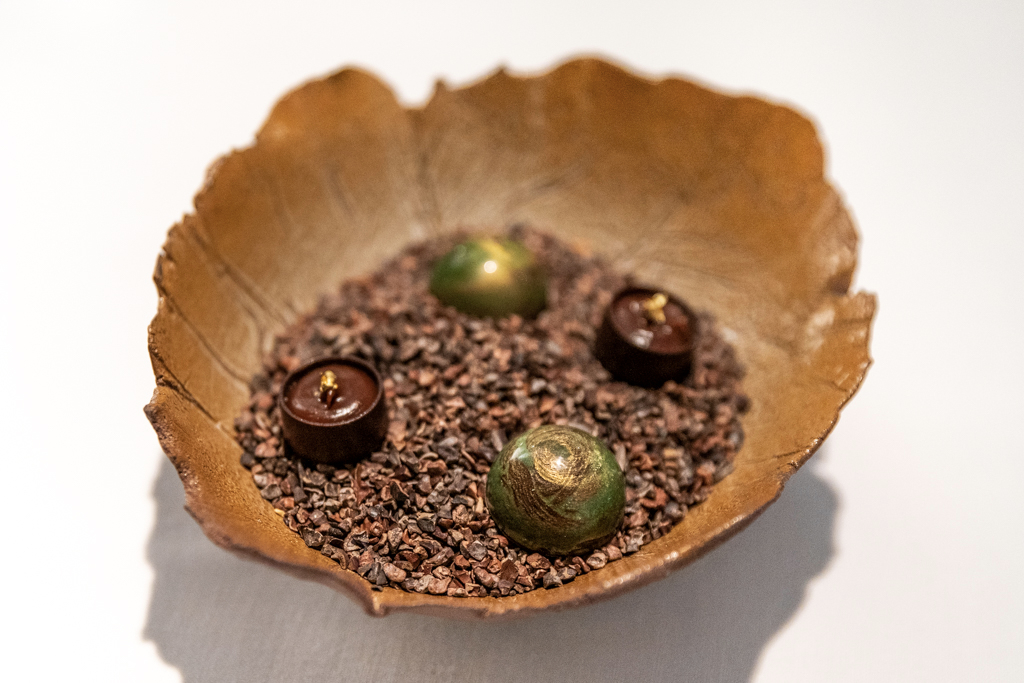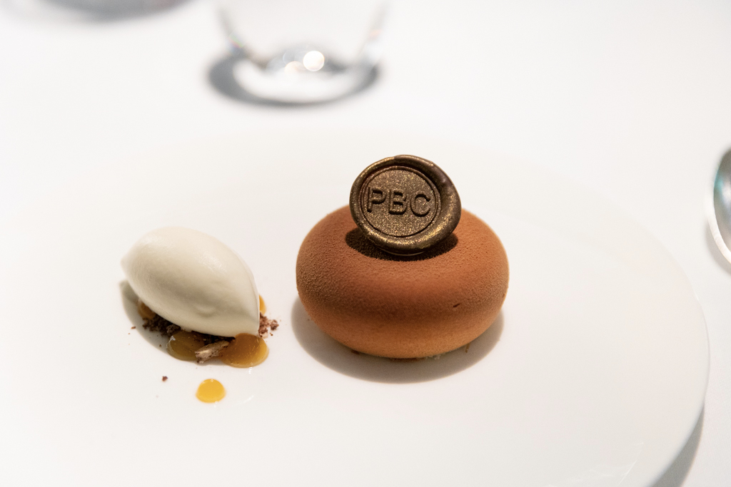 After a pre-dessert that is, actually, a dessert, we have a PBC – their signature peanut, banana and chocolate pudding – and the passion fruit tart with banana cream, kaffir lime and chocolate. I have to admit the combinations of flavours of the puds on the menu do not exactly correspond to my taste, but those we try are good enough to please me. Finally, chocolate comes in the form of petits fours.