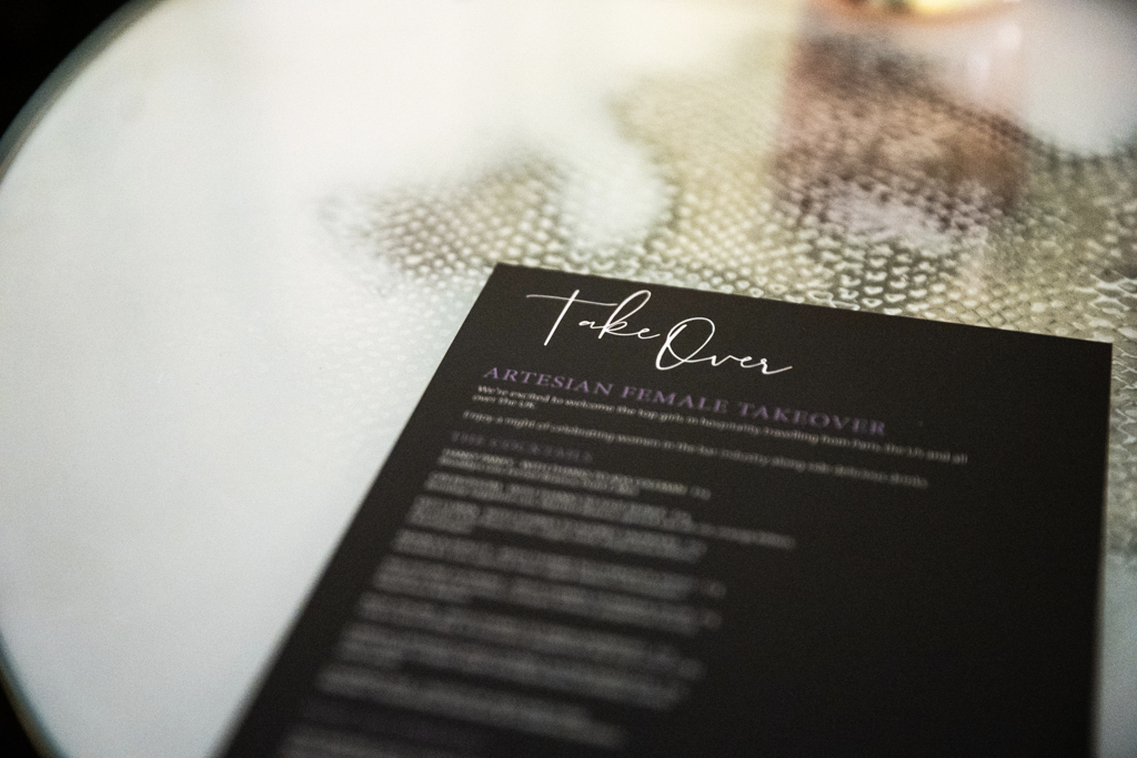 As host of the event, the Artesian team came up with a new concoction to toast a memorable last takeover. Celebrate Her was a slick creation combining Michter’s Small Batch Bourbon and Cranberry Bubbles, served with a single ice cube.
