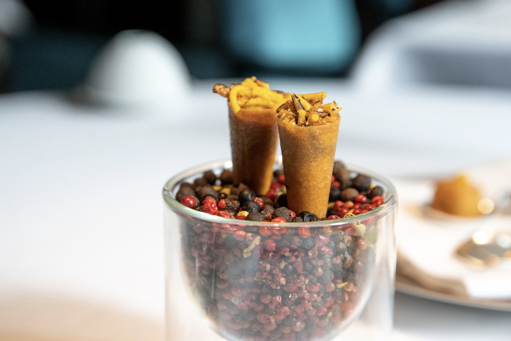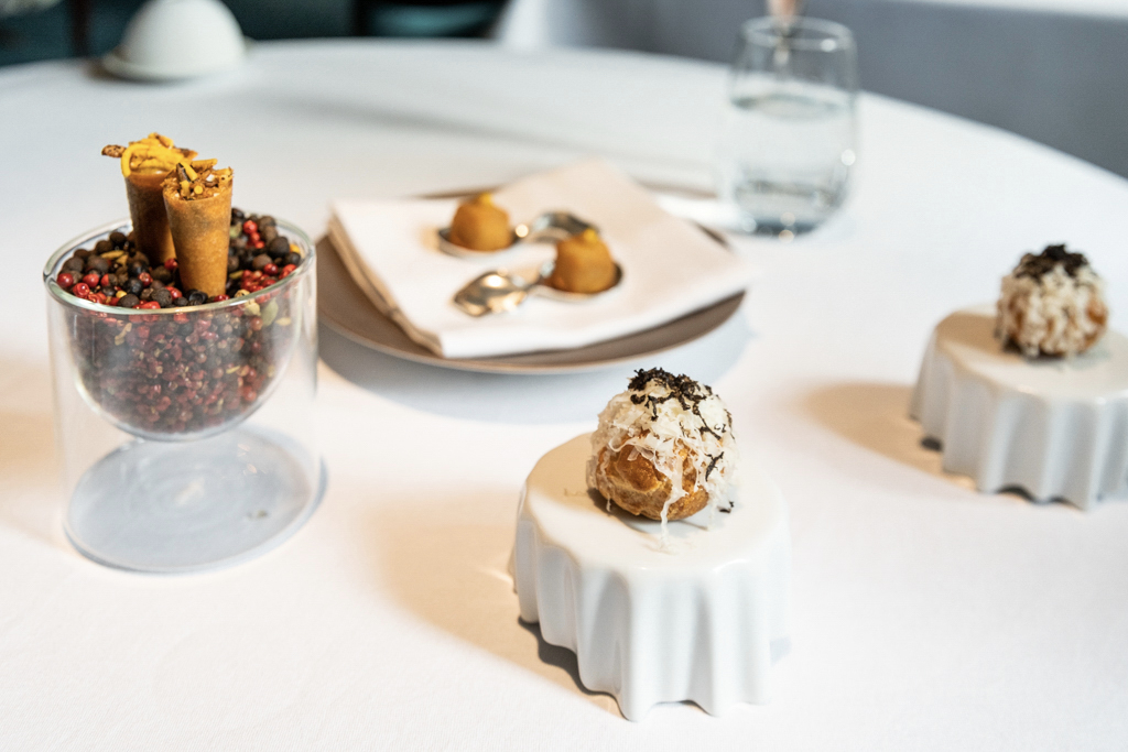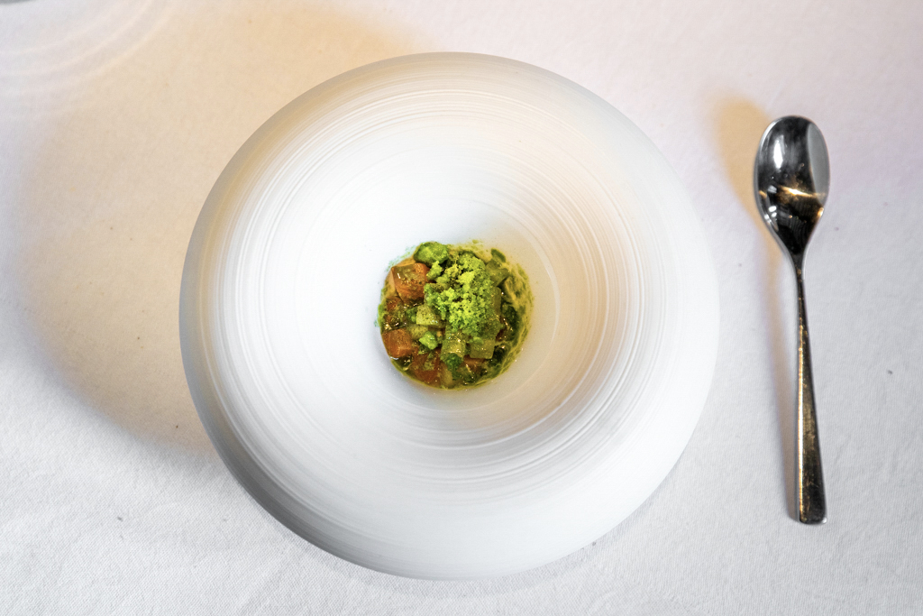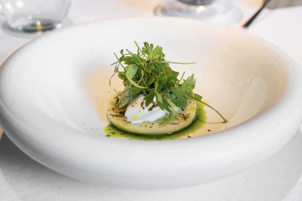It’s lunchtime, a wedding is being celebrated next door, the guests wandering around the pretty garden. Inside the dining room, the vibe is elegant and remarkably relaxing. It’s very different from fine dining in London because people here seem to be enjoying their time without any rush.