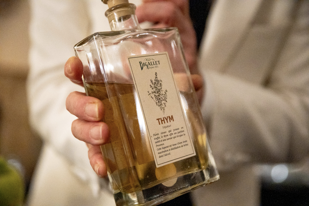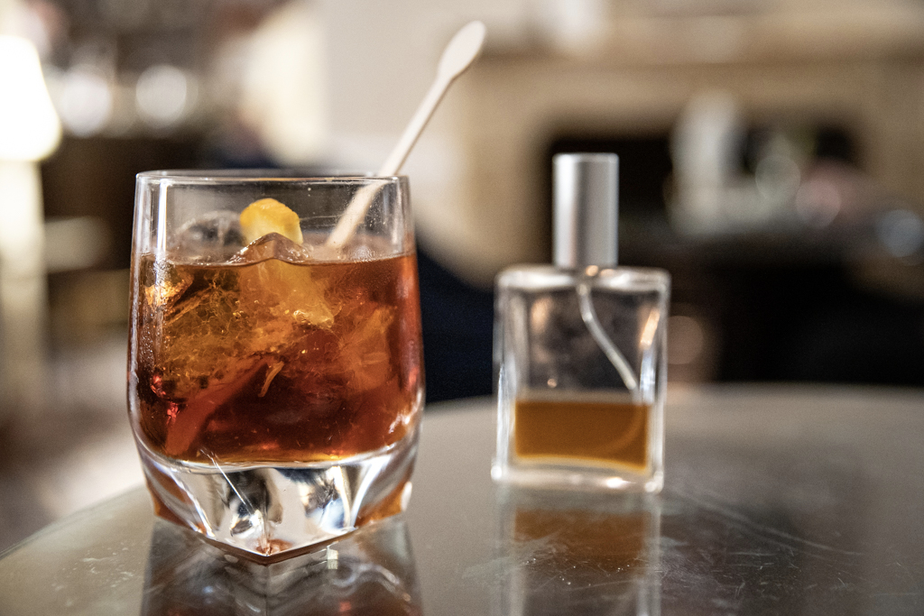 A similar show is offered for Room 39. The preparation begins with drops of vermouth in a cold glass that the bartender theatrically shakes off onto the floor. This performance is fundamentally motivated by the strength of the wine, of which just a splash is needed. Palazzi then mixes in Centerbe liqueur, a robust 70% digestif from Abruzzo; Sacred Gin from Highgate; and thyme liqueur. This time, the zest on the rim is provided by a fragrant lemon from the Amalfi coast. Tinted on the aquamarine spectrum, this cocktail strongly differs from the previous one, but proves an equally exceptional smooth blend.