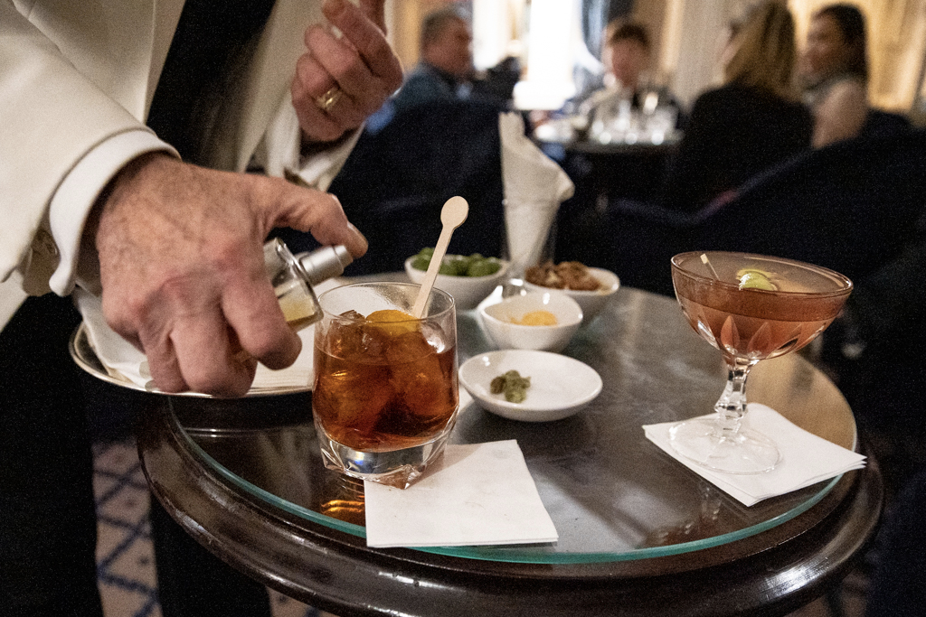The solid reputation of this iconic cocktail has grown in the last 35 years or so, since legendary mixologist Salvatore Calabrese took the helm. The “direct martini” – which involves keeping the gin, vodka and glasses in the freezer so as not to have a diluted concoction but a pure mixture – was born with him. Gilberto Preti followed immediately after, before passing on the considerable heritage in 2007 to Alessandro Palazzi, who twisted, re-created and expanded the selection of drinks, leading with his outstanding charisma.