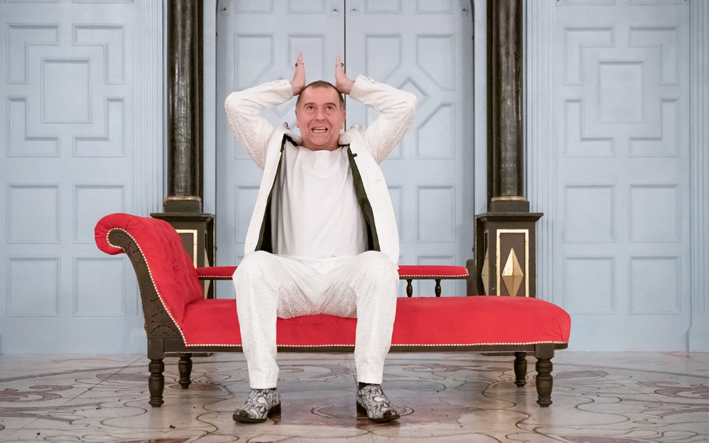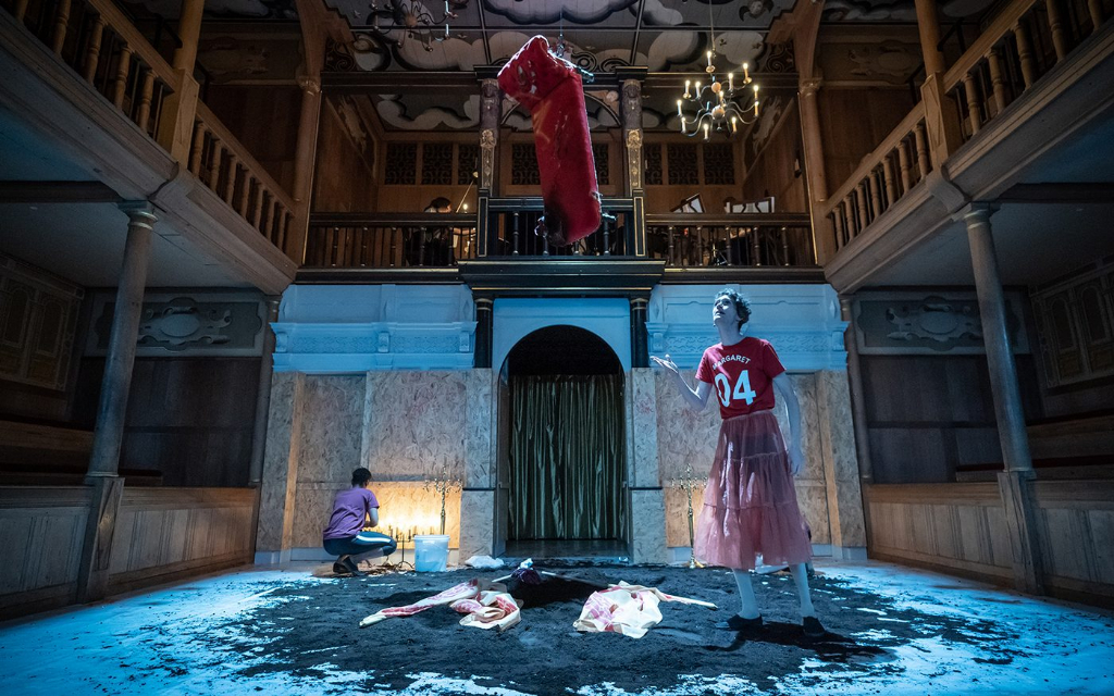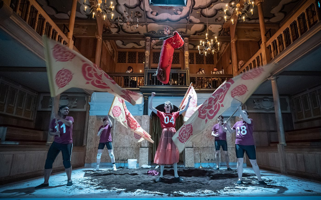Grace Smart’s set design blurs the lines between tragedy and comedy, and Emily Adamson’s costume design brings an almost Orwellian feeling – complete with animal masquerades – to the people’s resistance that gives voice to those outside the confines of the court and the troubles of the nobility.