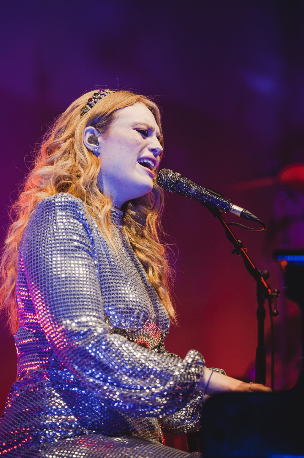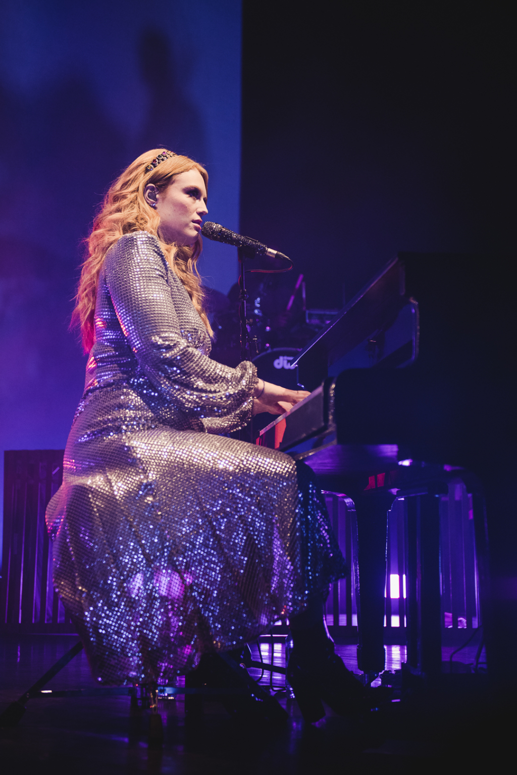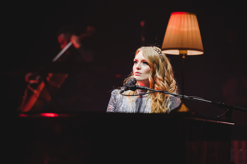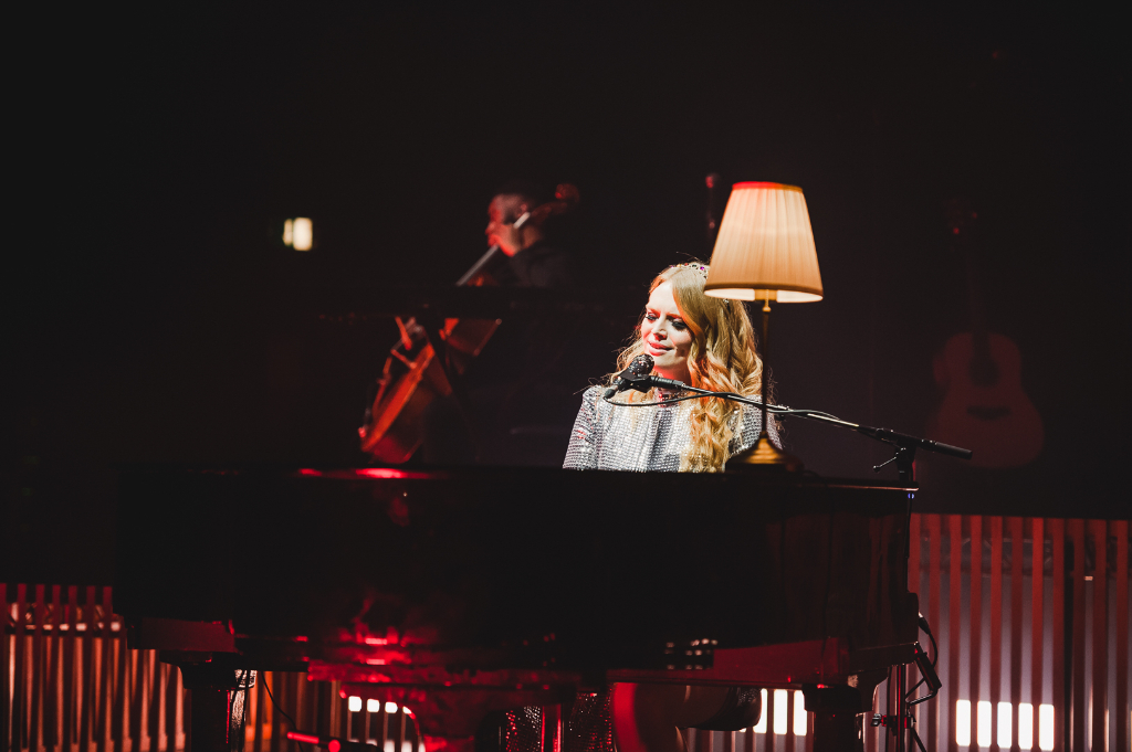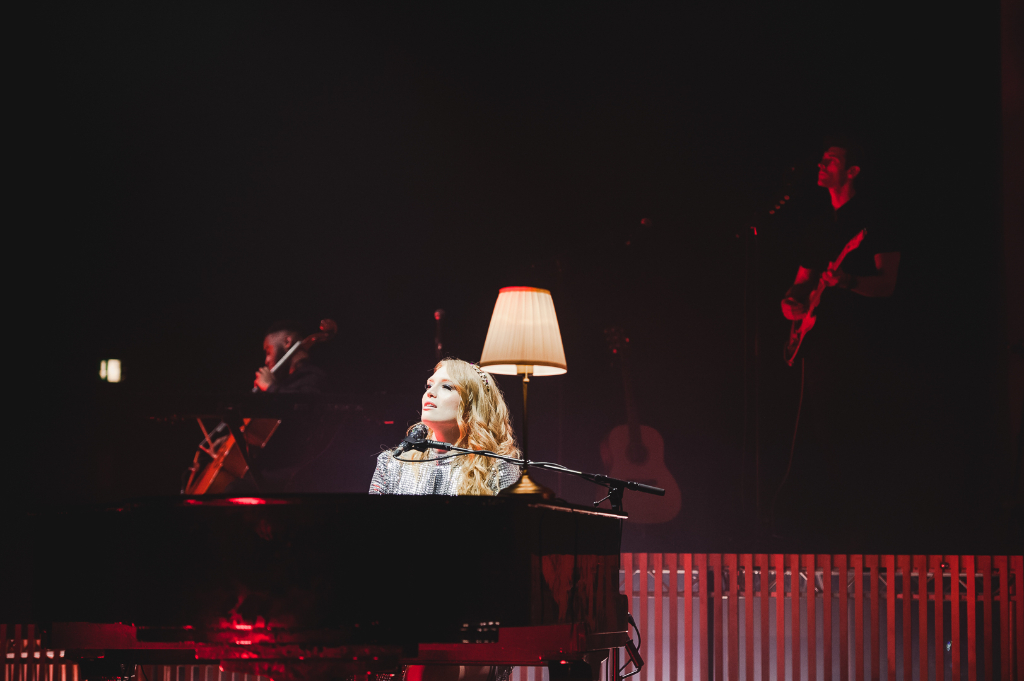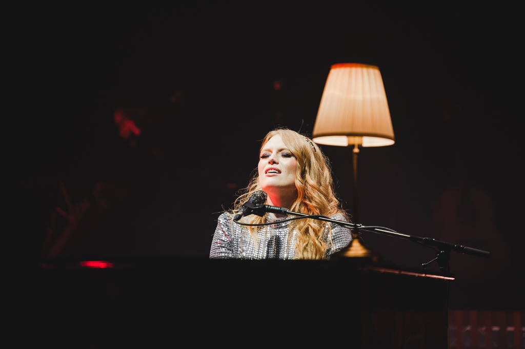 An intriguing setting accentuated the singer’s talents: centre-stage on piano, she looked angelic as glowing lights beamed up behind her. Band members played on multiple platforms around her, which bestowed a textured quality to the layout, while dynamic lights flashed with the music, yielding a dramatic effect.