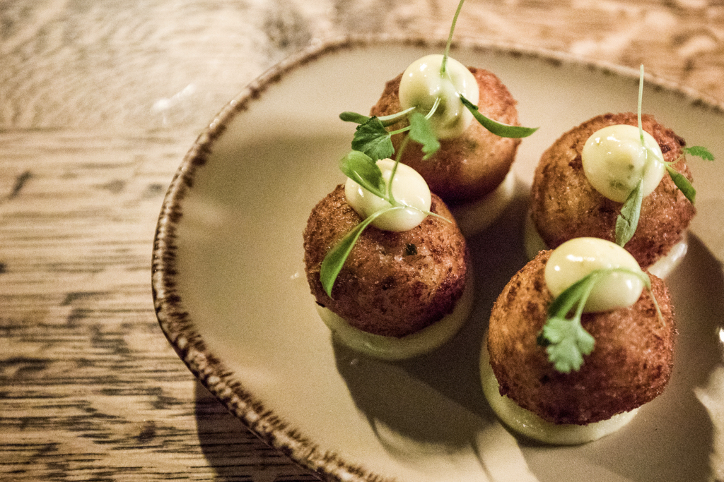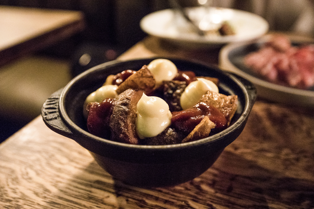 A more elaborate presentation went into the Marinated Chicken Thighs, which stood on a celeriac base, with spoonfuls of truffle and date mascarpone. The resulting combination was intriguing, playing with the different textures and consistencies. We relished the authentic take of the Patatas Bravas: the potatoes were fleshy and firm in their pyramidal shape, with dabs of aioli and ketchup.