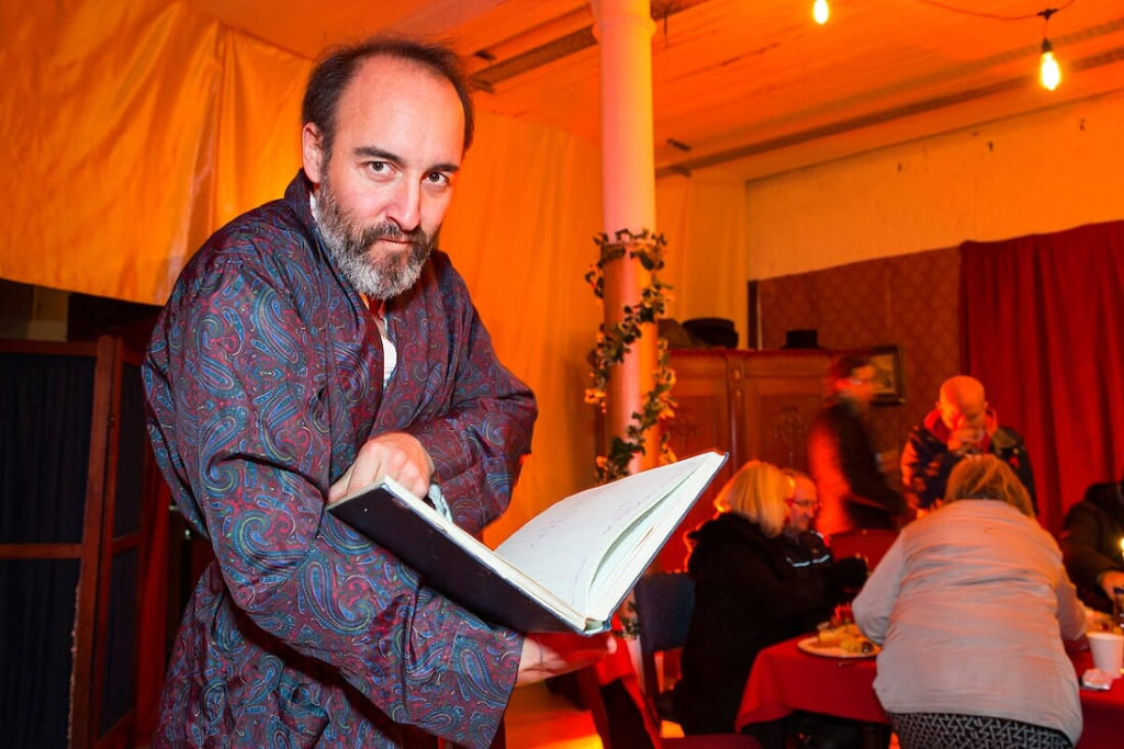 This more or less two-man theatre-adaptation-slash-dining-experience departs from Dicken’s classic seasonal story in a number of ways, not least with the two-course turkey dinner in the middle, but certainly keeps its heart.