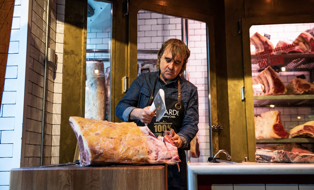 Sagardi proudly say they don’t believe in long ageing periods. Following Basque tradition, meat can be aged between two and five weeks, depending on the quality, size and type of fat. The main objective of this process is allowing for the muscles to relax, letting the superficial and infiltrated fats blend into the meat, and enabling the natural chemical processes to take place. This process is done on-site in cold, ventilated meat maturation chambers, between 10 and 30 degrees Celsius and 70% humidity. This creates a healthy, clean, naturally flavoured meat. All in all, a noble gastronomic product.