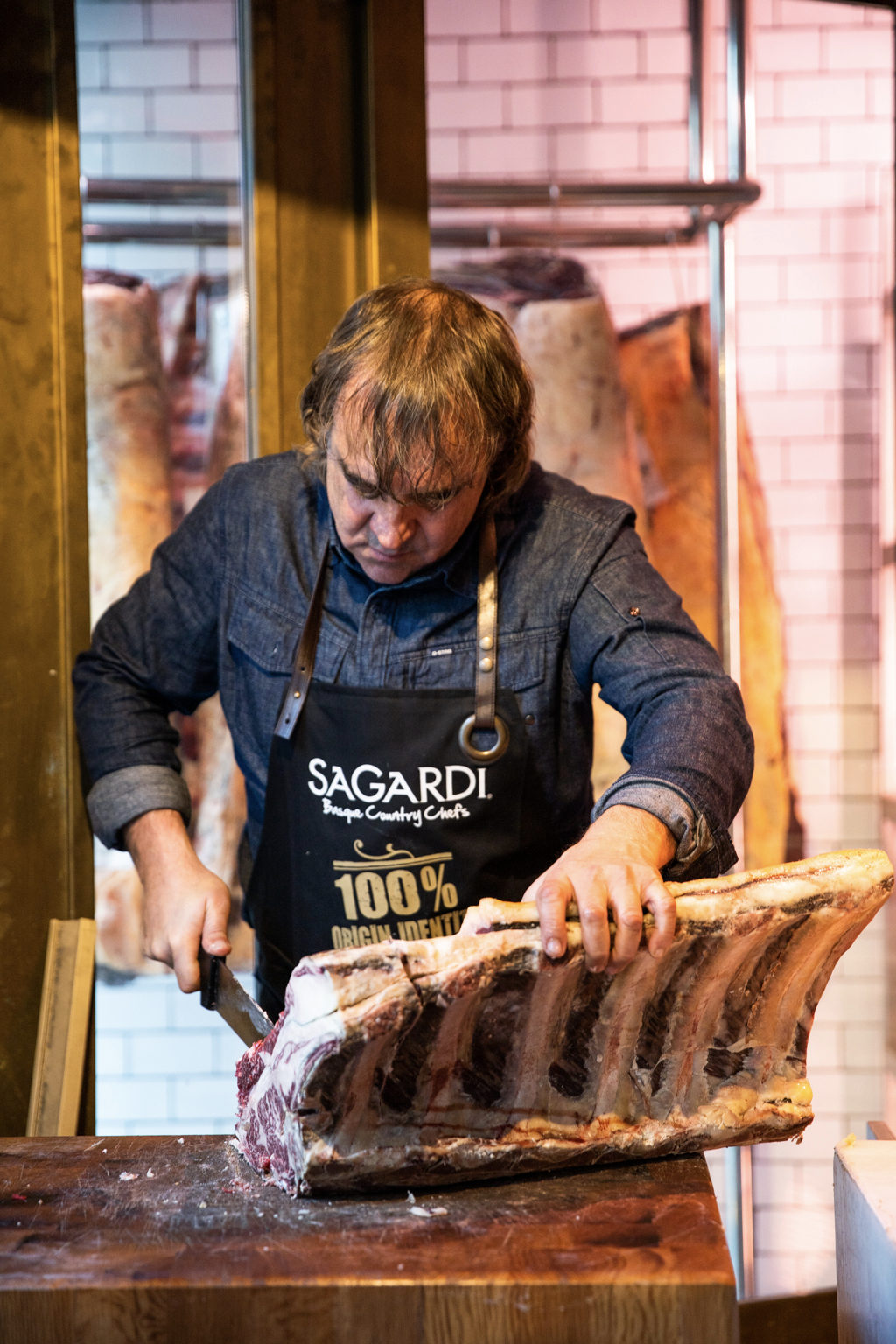 Sagardi proudly say they don’t believe in long ageing periods. Following Basque tradition, meat can be aged between two and five weeks, depending on the quality, size and type of fat. The main objective of this process is allowing for the muscles to relax, letting the superficial and infiltrated fats blend into the meat, and enabling the natural chemical processes to take place. This process is done on-site in cold, ventilated meat maturation chambers, between 10 and 30 degrees Celsius and 70% humidity. This creates a healthy, clean, naturally flavoured meat. All in all, a noble gastronomic product.
