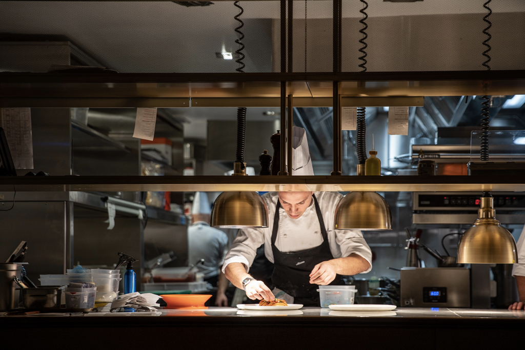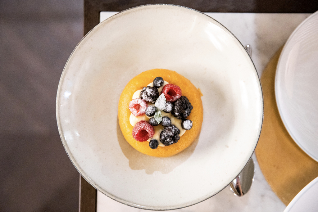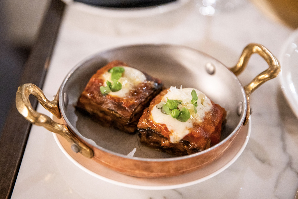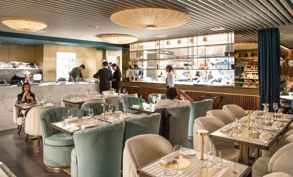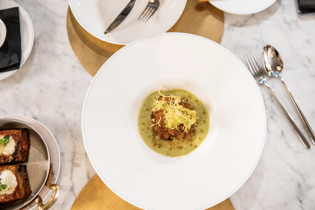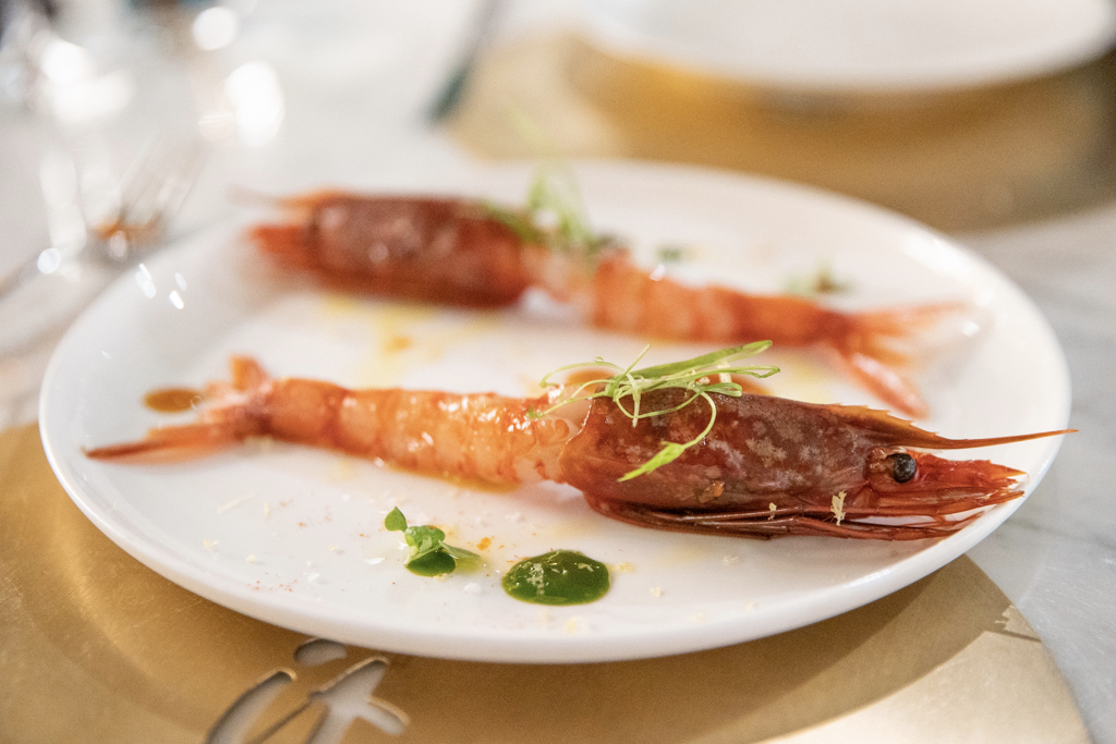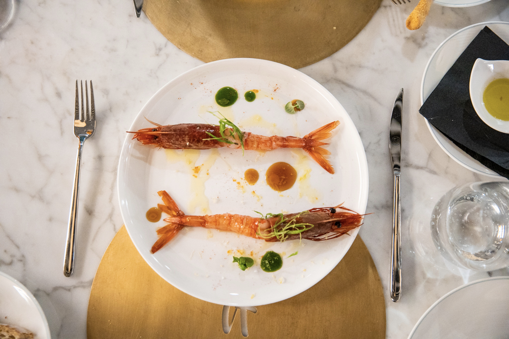 Comfortable suede seats, swanky marble tables and golden details make up the vibrant dining room, which is overlooked by a busy kitchen and a raw fish counter. Despite the Neapolitan origins of the chef, the menu is a celebration of all Italian cuisine, from North to South. We kick off with a spritz – our sommelier was aptly from Padua, where the cocktail comes from (Venetians would argue it’s actually theirs) – and a glass of Trento Doc Ferrari Perlé 2013 (think champagne, made in Trentino, Italy).