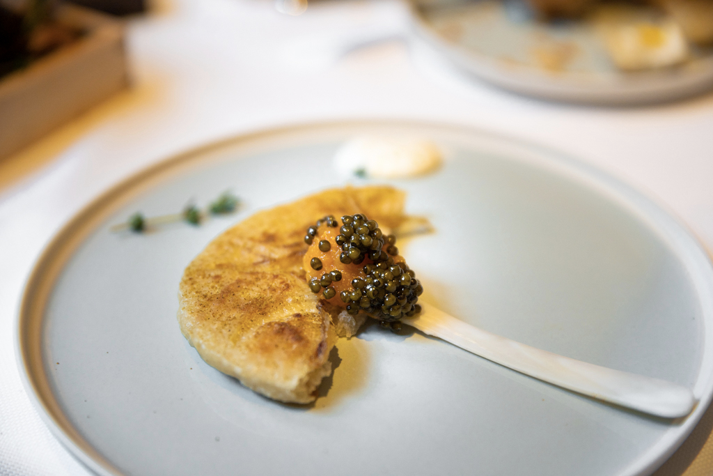 Davies and Brook wants to be a legitimate sister to the New York restaurant, not a third-degree relative. The same architect – Brad Cloepfil – took care of conveying a similar vibe, with a setting that echoes the grandeur of a bygone era. Yet, it stays sober. The colour palettes play down the opulence, in line with the cleanliness of the dishes. And now, onto the food.