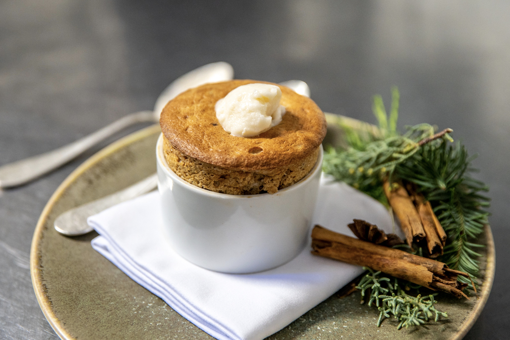 This year Launceston Place’s head chef Ben Murphy shows us how to whip up a light alternative to the traditional Christmas pudding. Though the recipe is featured on the restaurant’s seasonal menu, the souffle can just as easily be enjoyed at home, and it’s a great way to elevate your festive leftovers beyond the classic cold turkey sandwich. On top of taking us through his method, Murphy offers some top tips for achieving the perfect rise.