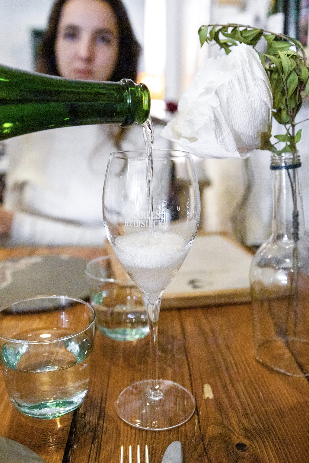 We started off the evening with some sips of English sparkling wine, a product of Handling’s group, coming from West Sussex, and a session IPA – a collaboration with a London brewery. Both right choices for any of the food options available.