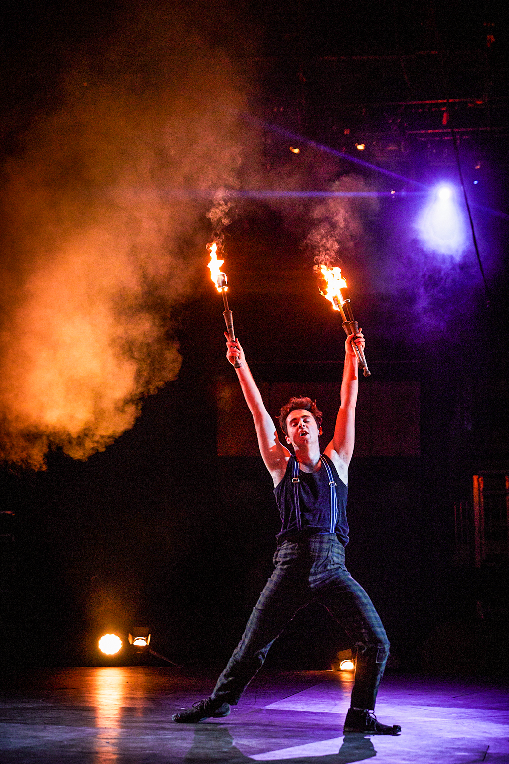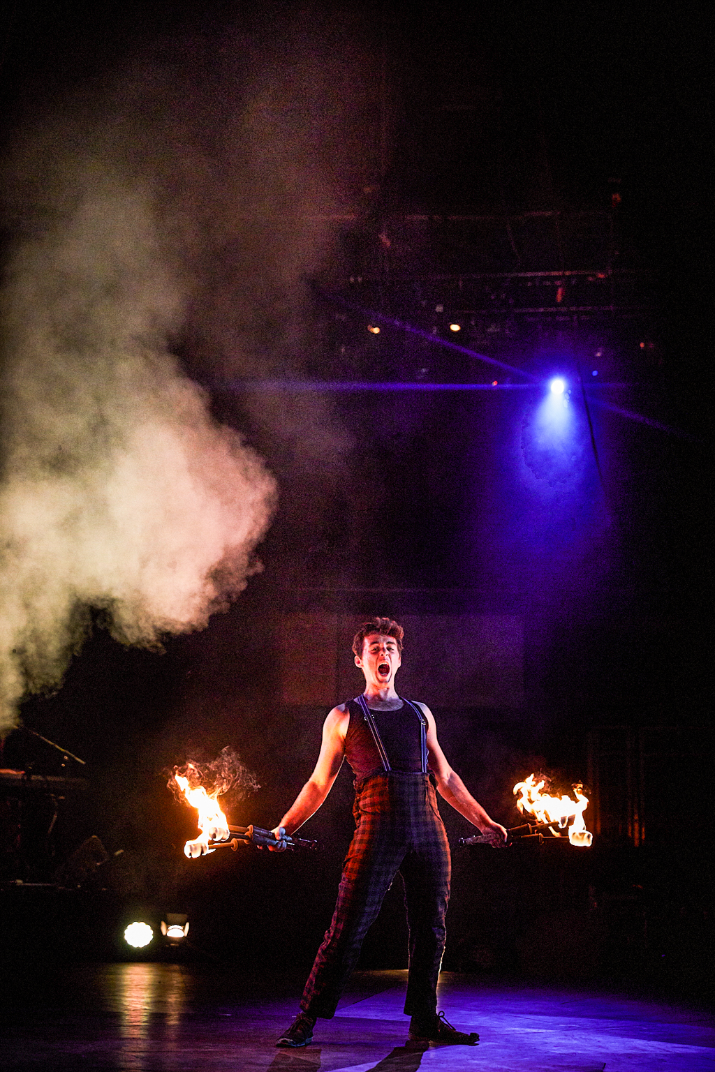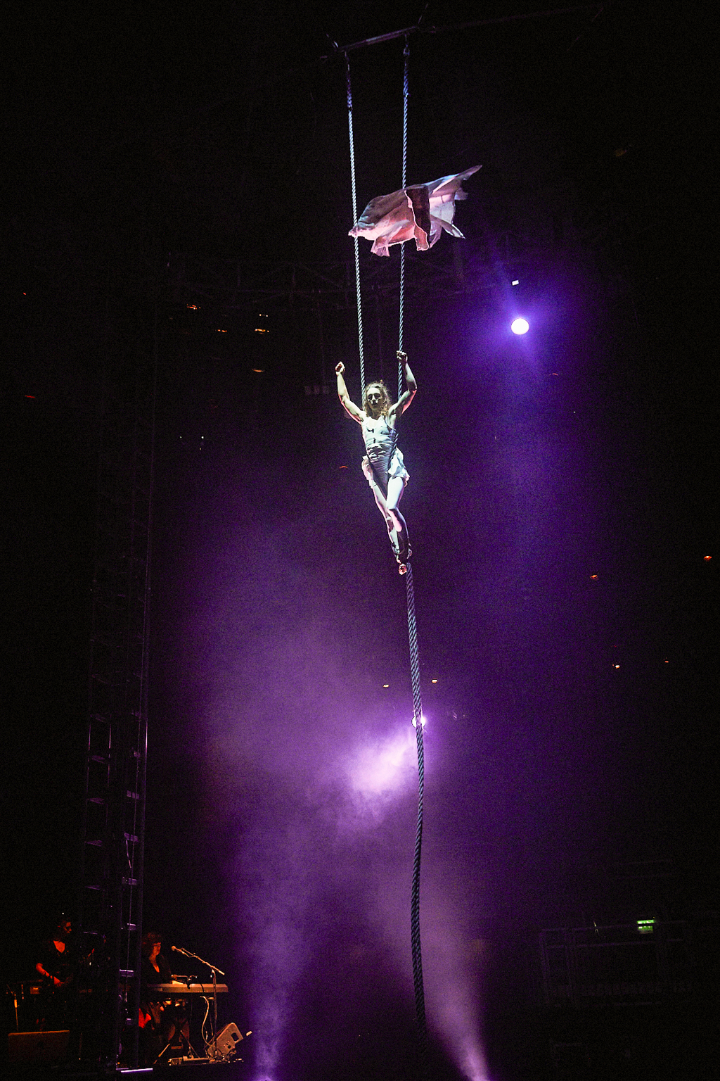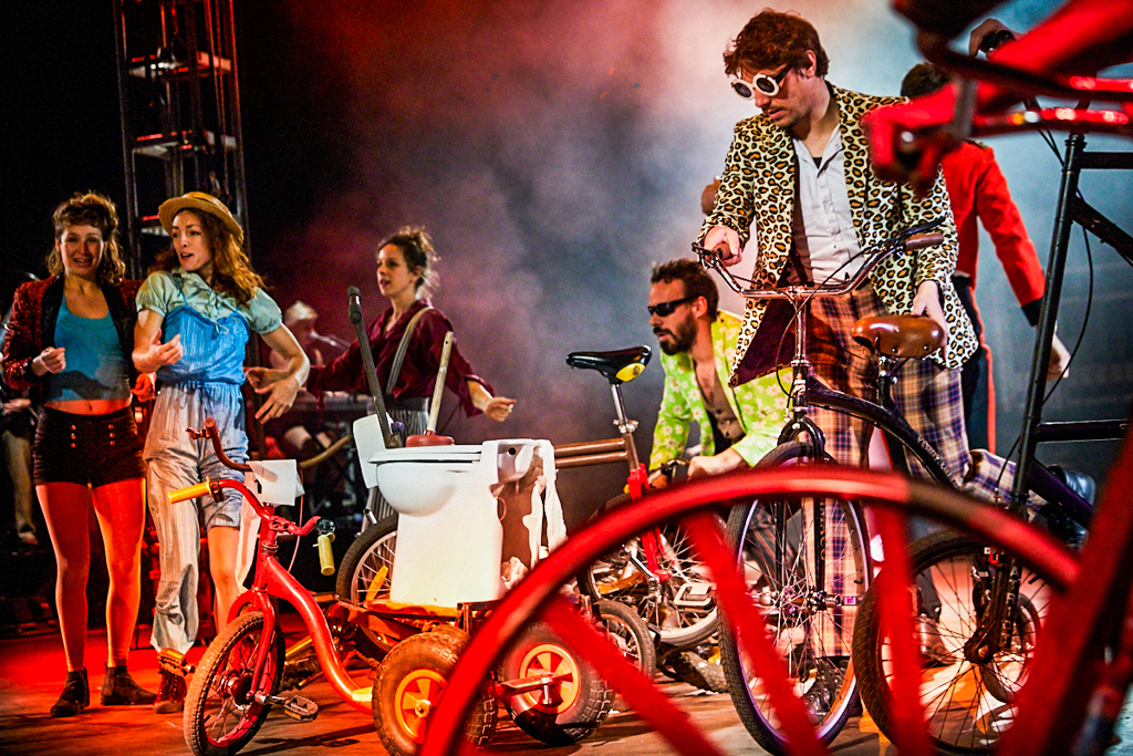 The lofty ceilings of Camden’s Roundhouse have been transformed into an intimate space in more ways than one by the jubilant anarchy taking place. As the performers fly about on stage, the riggers negotiate their way around the beams and the live band warp the atmosphere of the room, you find yourself wishing for more pairs of eyes to watch it all unfold. Every movement by every performer in this show is perfect artistry and completely fascinating, the ensemble pushing the boundaries between real and imaginary.