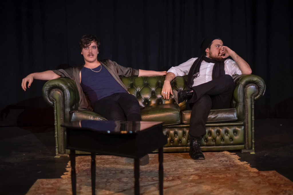 Preceding the first act, Shakespeare’s Hamlet is briefly alluded to in the introductory scene. With its Addams Family vibe, the creepy maid and narrator, Lane (Nea Corner) – who also plays the puppeteer and features in the Greek chorus – quotes Hamlet’s “To be, or not to be, that is the question”, whilst looking on as two resurrected dead men (Duncan Rowe, Louis Pottier Arniaud) dance to harpsichord music. Thereafter follows Wilde’s reimagined narrative as this comedy of manners and confusion follows the love lives and deceptions of a few stilted individuals in Victorian England.