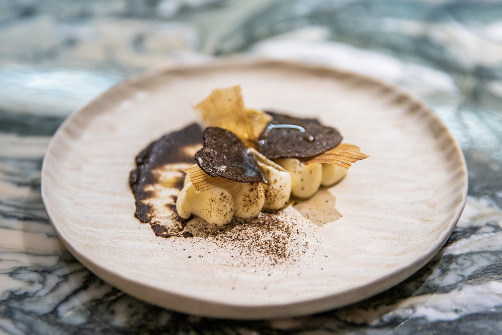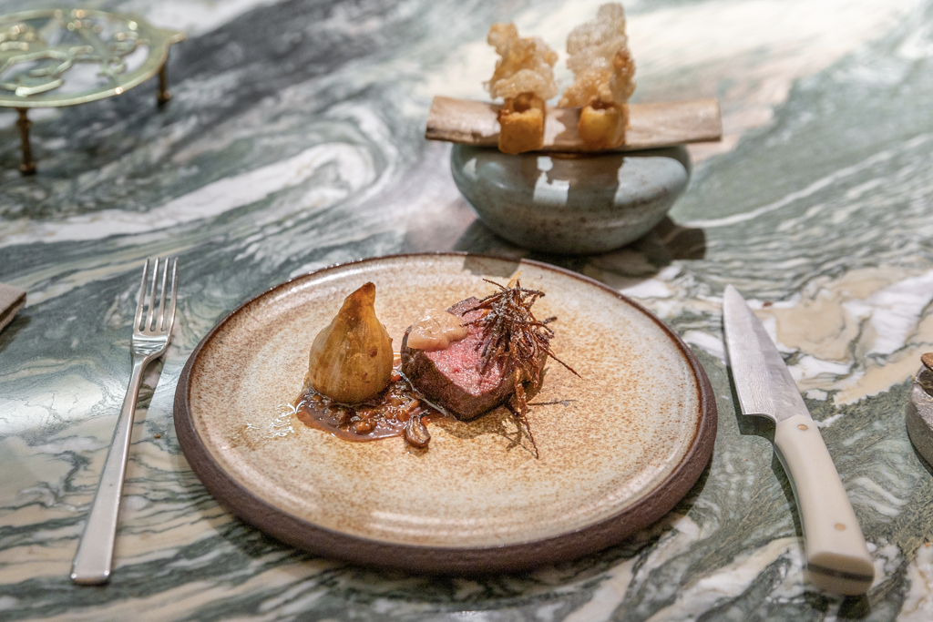 Dining at the counter is wonderful because, contrary to most restaurants, here you actually share the worktop with the chefs. To preserve the marble, they use a number of pretty iron pan protectors. Playing with Fire is the meat dish and yes, we know Aikens enjoys playing with it, “for good and bad reasons” (as stated on the menu). They use retired dairy cows, who are taken back to pastures to be turned into beef cattle. Topped with crispy shallots, onion ash and smoked marrowbone, this sirloin is quite amazing and it tastes properly aged. Finally, we also enjoy a piece of turbot, served on Joël Robuchon-inspired mashed potatoes, with a Pierre Koffmann-style duck confit, dubbed The Love Affair Continues (a reference to France and his mentors).