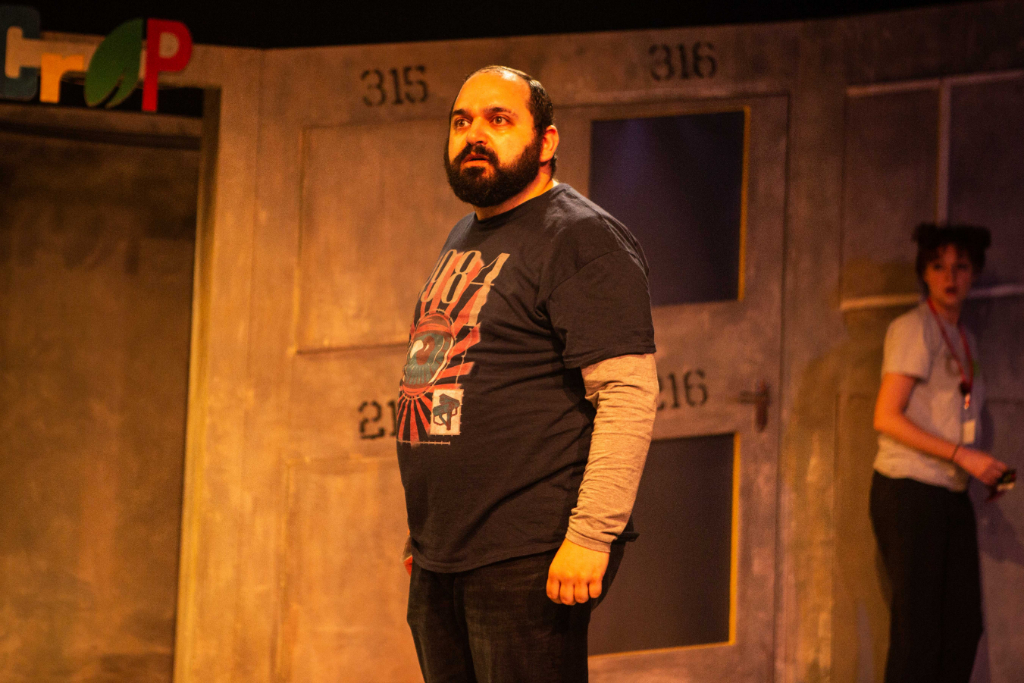 Jo’s motivations were unclear throughout. Why would this non-wealthy woman originally create the app? The characters were one-dimensional tropes, but the actors tried to bring them to life. Some standout performances were the interpreter who couldn’t speak for himself, Ralph Bogard the exuberant lawyer, George Eggay, who kept the audience laughing, and his believably ignorant wife, Catherine Bailey. However, it was unbelievable just how unenlightened people appeared to be in this world. A few small moments of ignorance were highlighted by Jo telling someone to look at her, not the interpreter, and rearranging on the staircase to allow Jo to see everyone, so people openly mocking the deaf seemed like overkill.