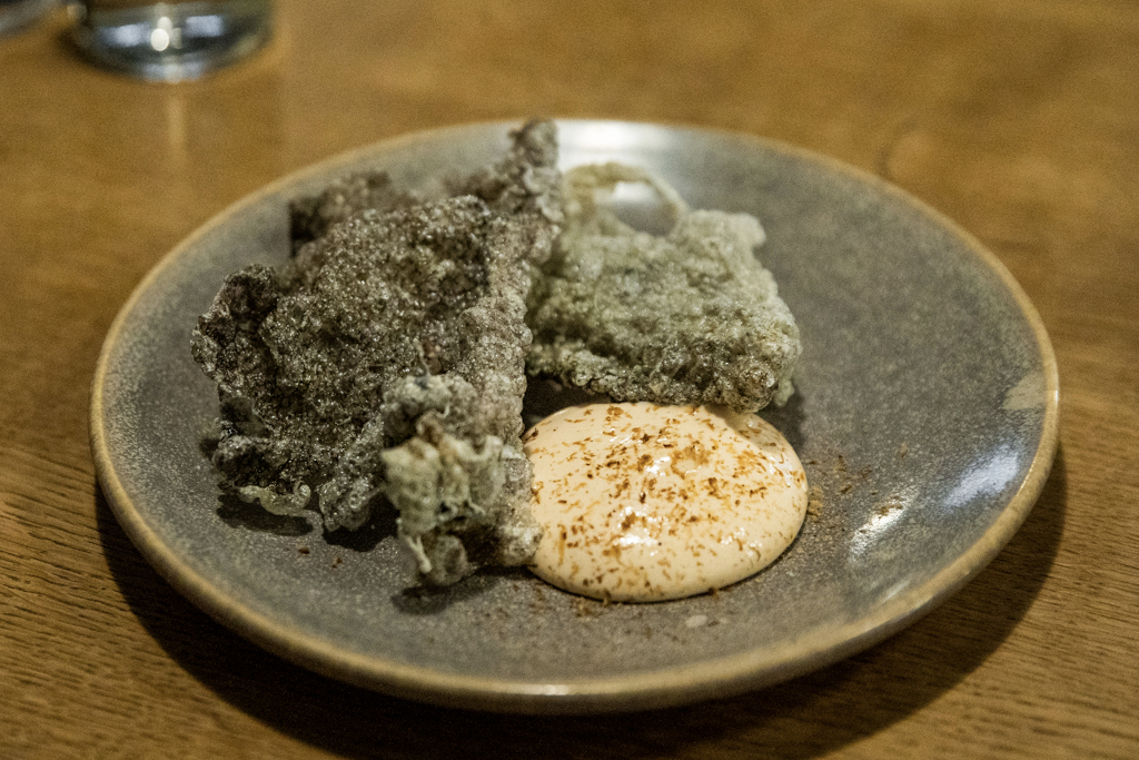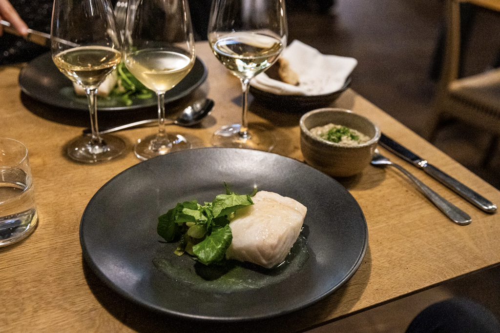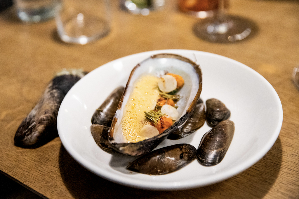 The menu for the evening was focused on the provenance of each dish, with fish from around the British Isles and the Scandinavian Peninsula. The most spectacular offering was a hand-dived, 14-year-old mussel from the Faroe Islands. The unique water temperature, of between six and eight degrees, of Faroes make these mussels special, which are then kept alive in fish tanks at the restaurant. The produce was shipped directly from Fiskebar to Ekte.