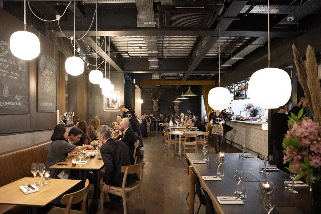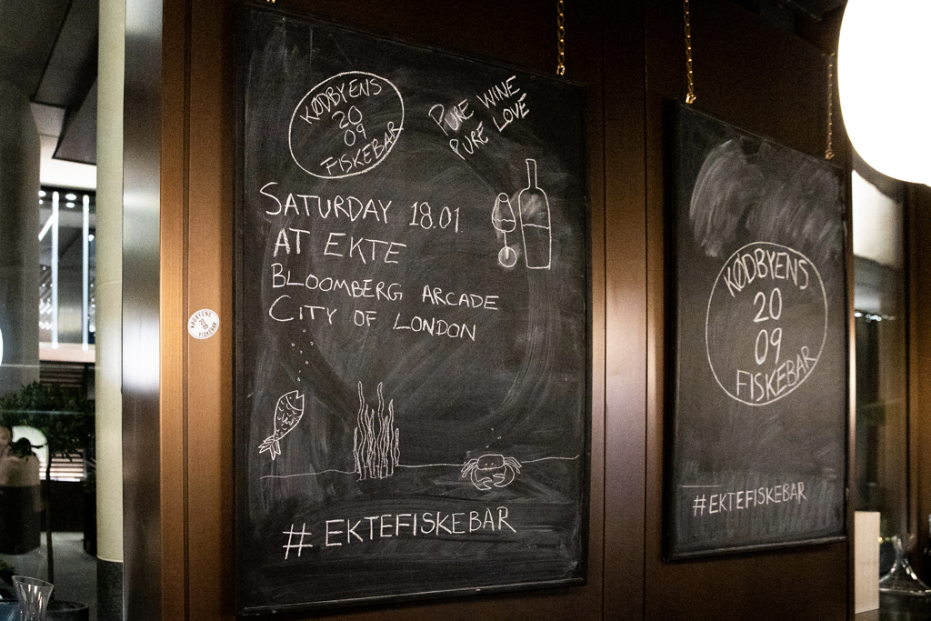 Last Saturday, chef Jamie Lee staged a pop-up lunch and dinner at Ekte Nordic Kitchen in the Bloomberg Arcade. Lee brought some of the fish dishes he has made his speciality at Fiskebar to London, bringing their staff from Copenhagen – even the waiters.