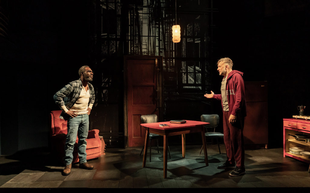 The Sunset Limited is incredibly intense from the offset. McCarthy’s terse dialogue and in-depth study of complicated themes – religion, family, death and violence – is interspersed with light, quick-witted humour. Beadie and Britton succeed in carrying out convincing portrayals of the differing views. Like Shakespeare’s forlorn Hamlet, Britton sits hunched over for most of the performance, running his hands through his grey hair, with the world seemingly resting on his shoulders. Beadie, however, is upbeat and open; his posture is wide and his tone is inviting, much like the scripture that the Bible teaches: love thy brother and sister.