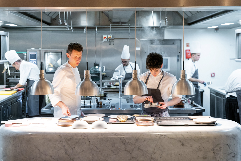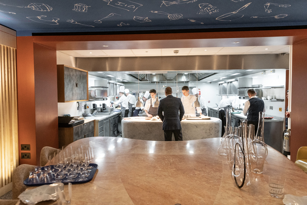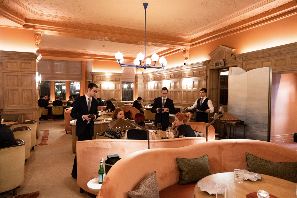 Hélène Darroze at The Connaught is a fantastic restaurant, boasting easily London’s best front-of-house team. Unless you have a six-figure salary, it clearly cannot be your usual place for dinner. However, for special occasions it’s a great destination. And for an extra special evening, you can also dine at the chef’s table, right in front of the action – the table is a large piece of pink marble that can sit up to ten, placed opposite the kitchen, under a cobalt blue fresco by French artist Rochegaussen – or at the sommelier’s table, next to the impressive wine cellar.