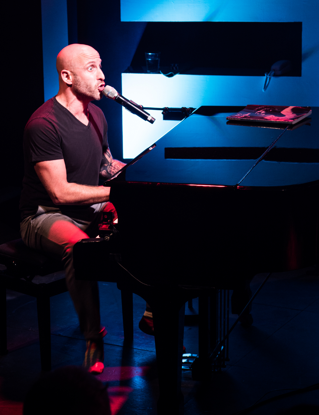 Accompanied by his wonderful band, playing eloquently in the wings (made up of “Elton” spelled out), the show is staged as an intimate gig, with Kaye on the piano belting out prominent John tracks one minute, then retreating to the couch to narrate his idol’s biography the next. Two hours flash by in seconds. And it never seems enough. The audience simply begs for more.
