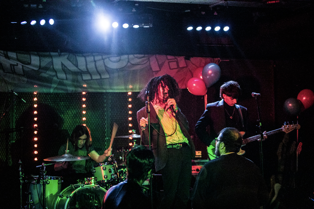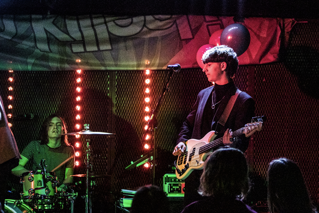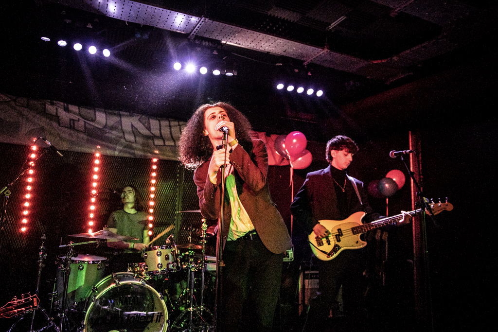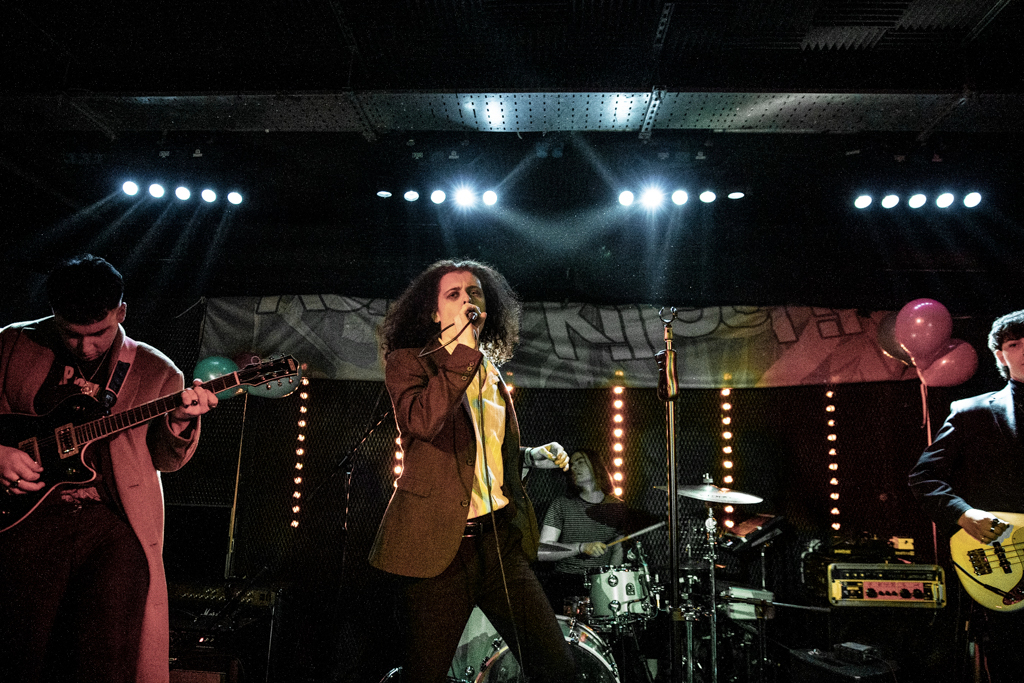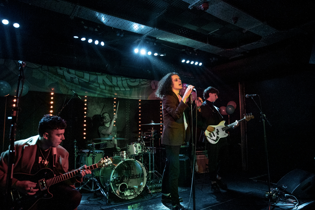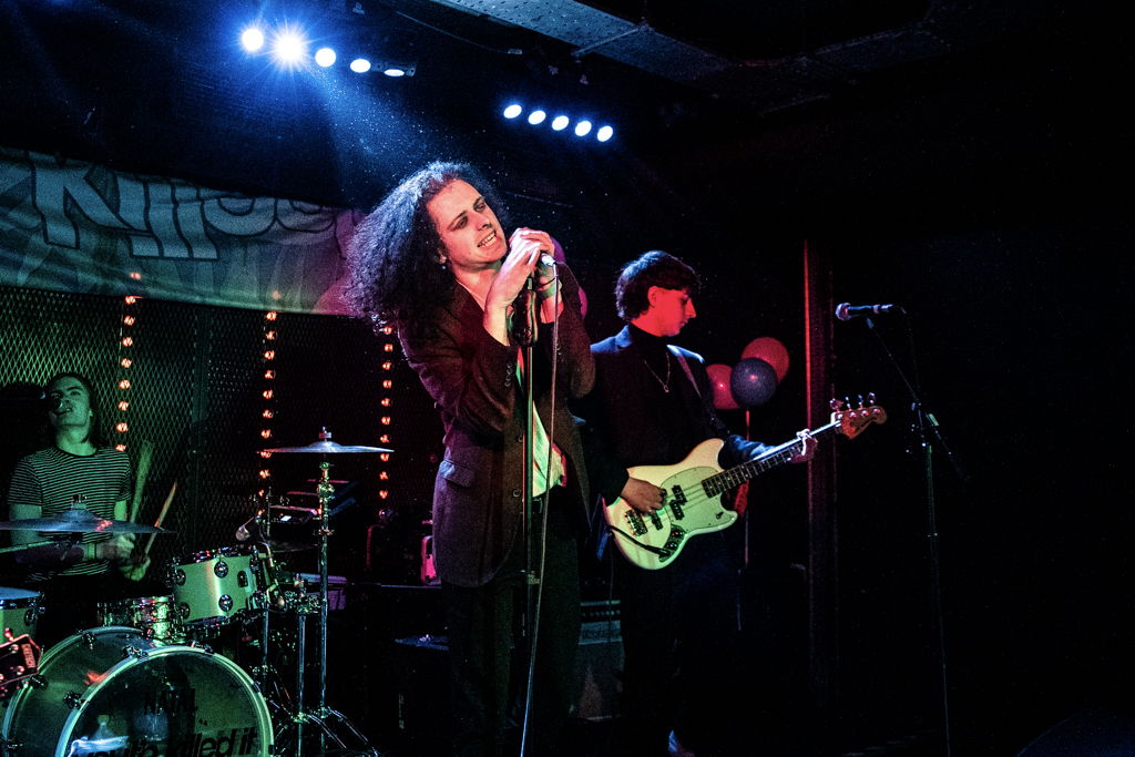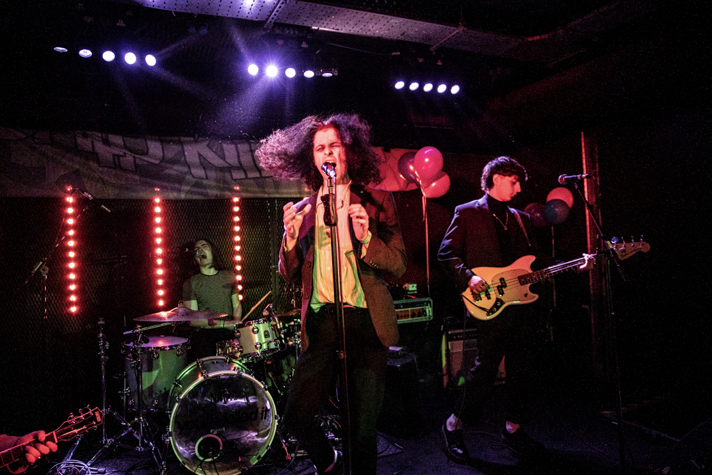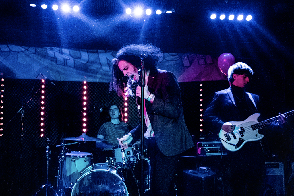This young Birmingham four-piece stride on stage with purpose – well, three of them do. Lead singer Connor Hill makes a delayed entrance: more meat on a butcher’s pencil and with hair that says he’s going somewhere. A little bit of eye makeup and more than a little showmanship. The guitarist and bassist had matching haircuts and a style that nodded to 80s skinheads. They mean business.