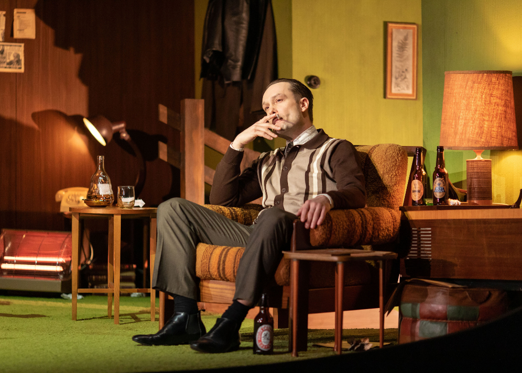 Rachel O’Riordan’s production is at its best when playing up its sitcom excesses in the middle portion. That impulse is only emphasised by Joanna Scotcher’s staging, which sees each lavishly detailed period set framed as if viewed through an era-appropriate television.