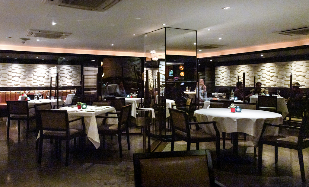 Dessert is always a priority for us. We were anticipating kulfi to be on the menu, since we’ve tried it many times over the years. Benares’ version of the sweet classic – a dairy-based dish resembling ice cream – is made of three different layers: the kulfi itself, followed by vermicelli, topped off by foamed Falooda with bits of raspberry jelly. Perhaps too much for one bowl, but impressive in terms of creativity. Our favourite course was the Bhapa Doi and Passion Fruit without a doubt. Made with steamed yoghurt and combined with passion fruit sorbet, the delicacy of the cream and the sourness of the sorbet make for an excellent match. Far simpler than the kulfi, yet far more satisfying.