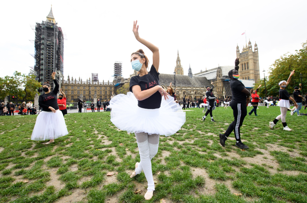 Survival in the Square is a form of protest and a cry for help that will see artists perform six socially-distanced pieces throughout the week in Parliament Square. Comedians, singers and actors will all make their voices heard, but on Monday it was a group of dancers that filled the square with their silent yet crystal-clear plea. The event was led by producer Gary White, Arlene Phillips and Pineapple Dance Studios founder Debbie Moore. It consisted of a brief choreography accompanied by a live orchestra, and 15 minutes of silence to draw attention to the void that can now be felt without the performing arts. The soundtrack, which plays for just over a minute, is Tchaikovsky’s infamous main theme from Swan Lake.