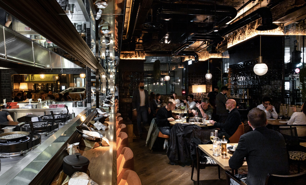 Described as one of the new leaders of avant-garde cuisine in Spain, three-Michelin-starred chef Quique Dacosta has brought his passion for paella and wood-fired cooking to the streets of Fitzrovia with Arros QD. The restaurant boasts an impressive interior which is the work of designer Lázaro Rosa-Violán. With moody, dark-tiled walls, immaculate timber flooring, opulent chandeliers, a monumental six-metre woodfire stove and a lively open kitchen where visitors can spy on the chefs hard at work, the scene was well and truly set.
