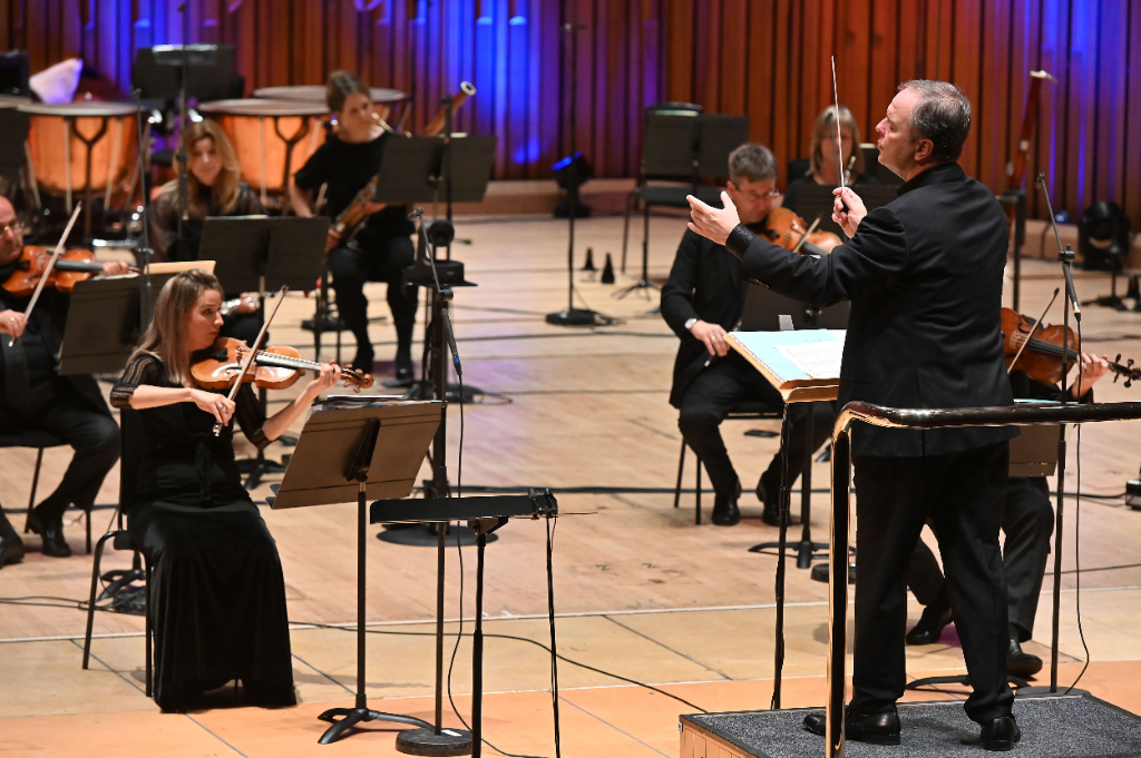 The effect of the empty hall and scattered musicians is at first odd, but in fact it adds an almost haunting atmosphere, working to fully immerse listeners in the emotion-packed programme. The night starts with Anna Clyne’s Within Her Arms, a heartfelt piece for strings that is followed with an angsty rendition of Haydn’s Symphony No. 49 (La Passione). Oramo guides the orchestra with vigour, and passion pulses through the room under his baton. The close-up camerawork on instruments and the focused musicians brings a sense of complete involvement in the music and propels the impact of both works.