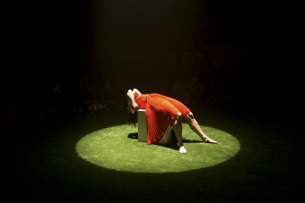 Performed at the Wapping Hydraulic Power Station, the former home of the company, the two pieces are social commentaries that draw attention to the raw feelings behind the external layers of routine events. Ride is a duet performed by Charlotte Broom and Omar Gordon, inspired by the idea of the “Season”, or the elite’s social summer programme of races, balls, regattas and so on. The work focuses specifically on Ascot. It depicts an elegant lady in red (an upper-class attendee) and a jockey meeting and connecting through motion. In Stairworks, the space is converted into a restaurant filled with a dining audience. When a news report comes in, it sets off a dance performed by men donning white bath towels. The choreography, which features Silvestrini himself, takes place on outdoor staircases that can be seen through windows and doors and is accompanied by classical music.