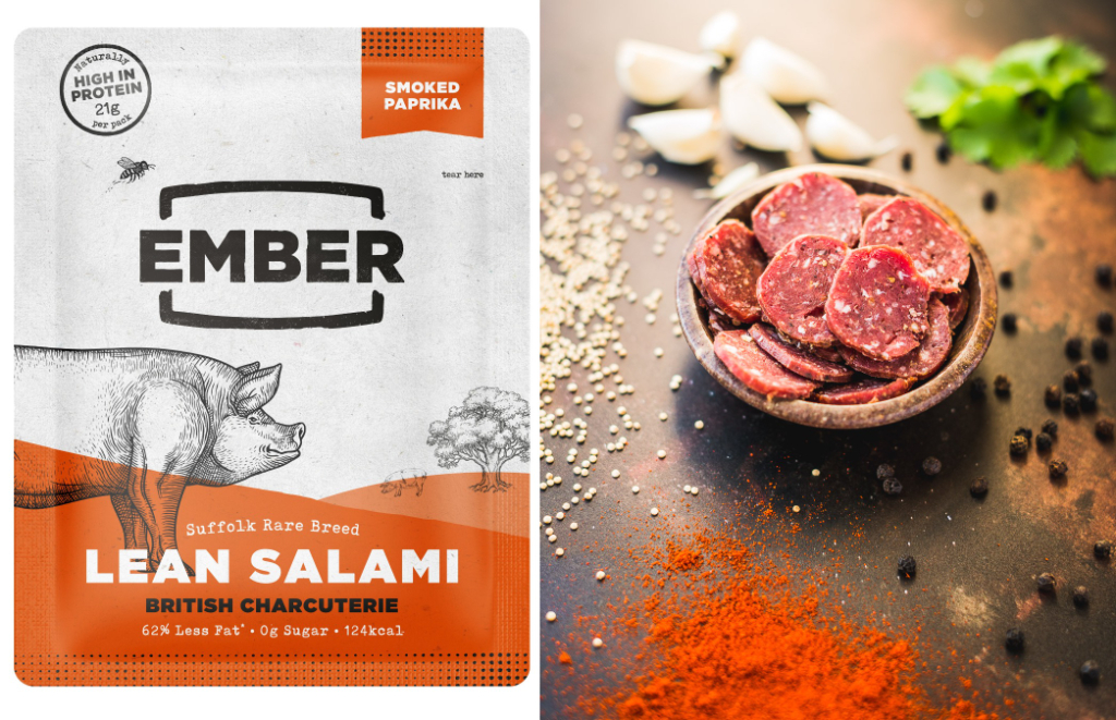 The new range is made using the highest quality meat sourced from like-minded farms and cured using a traditional charcuterie process. Keeping the nutritional value at the forefront, Ember widely experimented with ways to control the overall fat content of the range. To do this they incorporate British quinoa sourced from East Anglia and Surrey into the meat mix. This results in a range that is 50% lower in fat and 40% higher in protein compared to other similar products on the market.