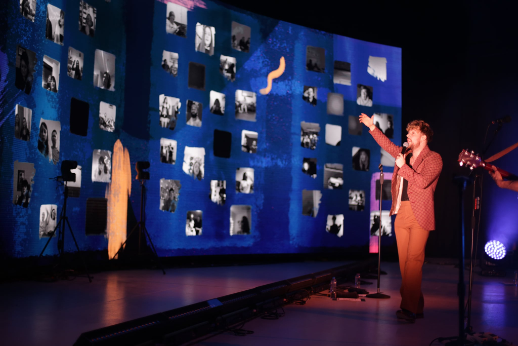 Perhaps because of the delay, the show never really seemed to take off. Mixed among the new songs from his upcoming album Evering Road were some older tracks including Royal Highness, Something Better and Barbed Wire. The fans seemed to enjoy new songs such as This Is the Place (based on the number of love hearts in the comments), as well as Make My Mind Up, which Grennan promised “will make you cry”. The live performance was, however, undermined by the gimmick of the singer repeatedly talking to the virtual audience who had been able to access the live stream, their faces awkwardly projected on a wall. These conversations, which resulted in him calling practically everyone a “legend”, broke up the flow of the music, turning the evening into a talk show instead of a gig. During his new song Never Be a Right Time, Grennan stopped and repeated it from the start so that his viewers could sing along. Unfortunately, those on the Facebook livestream could not hear any of the audience audio.