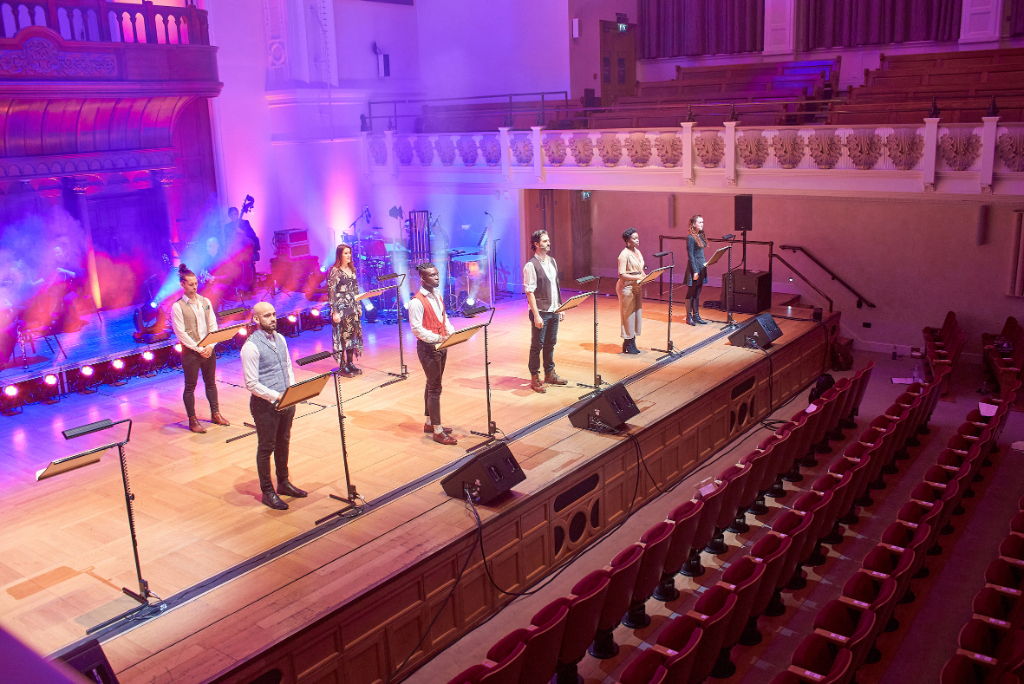 The performers wear modern dress and sing at socially-distanced lecterns, while Debris Stevenson does an excellent job of setting the scene and narrating the story. This is not a particularly visual show, being a musical “in concert”, and there isn’t a lot of movement, but the strong script and impressive vocals make it an enjoyable and engaging watch.