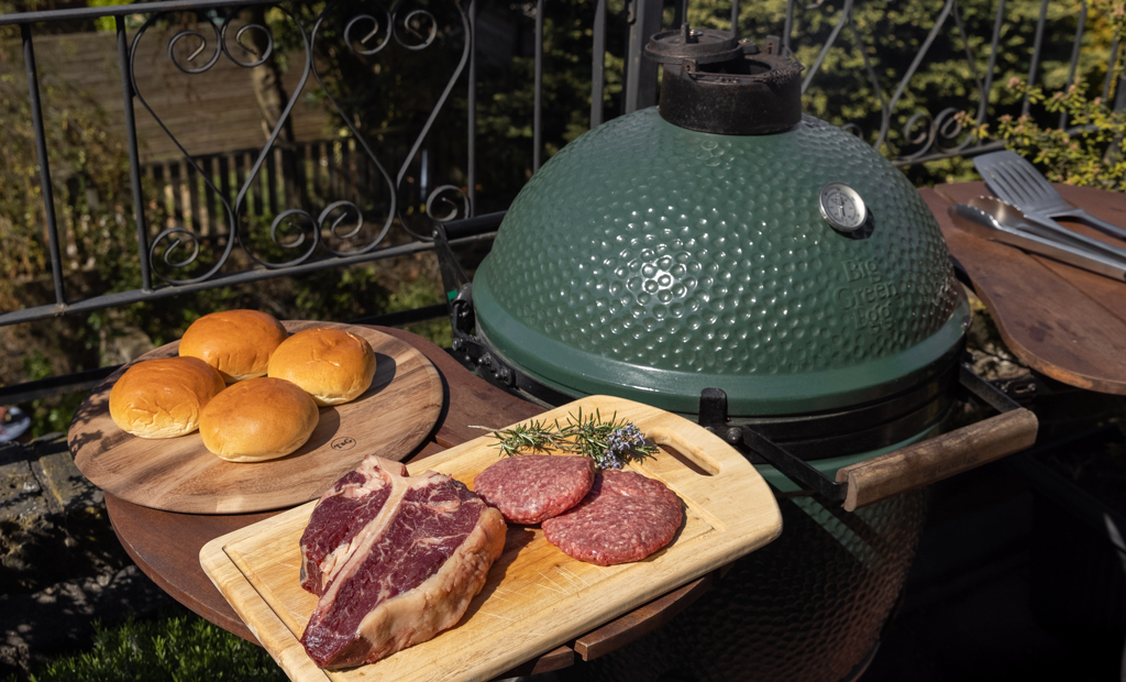 In terms of equipment, we used the reliable Big Green Egg (large) and West Sussex lumpwood charcoal from Green Olive. Each time the barbecue was fired up to the max (400°C), then stabilised around 250°C. The salt was plain Maldon crystals, added after cooking for the burgers; half-way through for the thicker cuts on the bone; and towards the end for the sirloins and ribeyes.