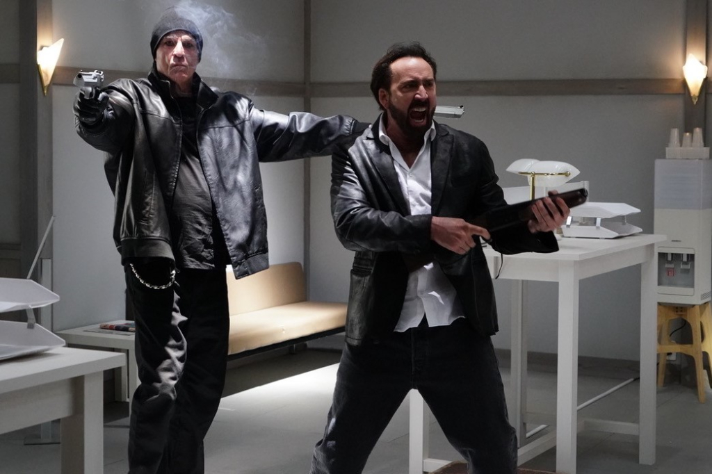 The plot sees a bank robber known only as Hero (Cage) released from prison by a southern gentleman dressed in a white cowboy outfit. This is The Governor (Bill Moseley), and he wants Hero to journey into the wastelands outside the boundaries of the samurai-meets-cowboy town to rescue his granddaughter (Sofia Boutella). And to give him some extra incentive to complete the job, he locks him in a snug leather suit armed with explosives placed in tactical locations which are designed to explode if he attempts to remove the suit, fails to complete his task within a certain time, or gets handsy with the granddaughter. However, more mysteries and secrets are revealed upon arrival at the titular Ghostland.
