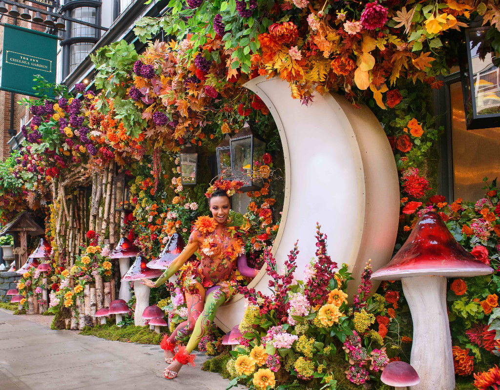 The restaurant’s King’s Road façade is adorned with show-stopping autumnal blooms, a magical wishing well and moon sculpture seat, offering rest, respite and a stunning photo opportunity for both visitors and passers-by. Nodding to the change in seasons, the external display also lights up after dark, bathing the surrounding area in a warming glow.