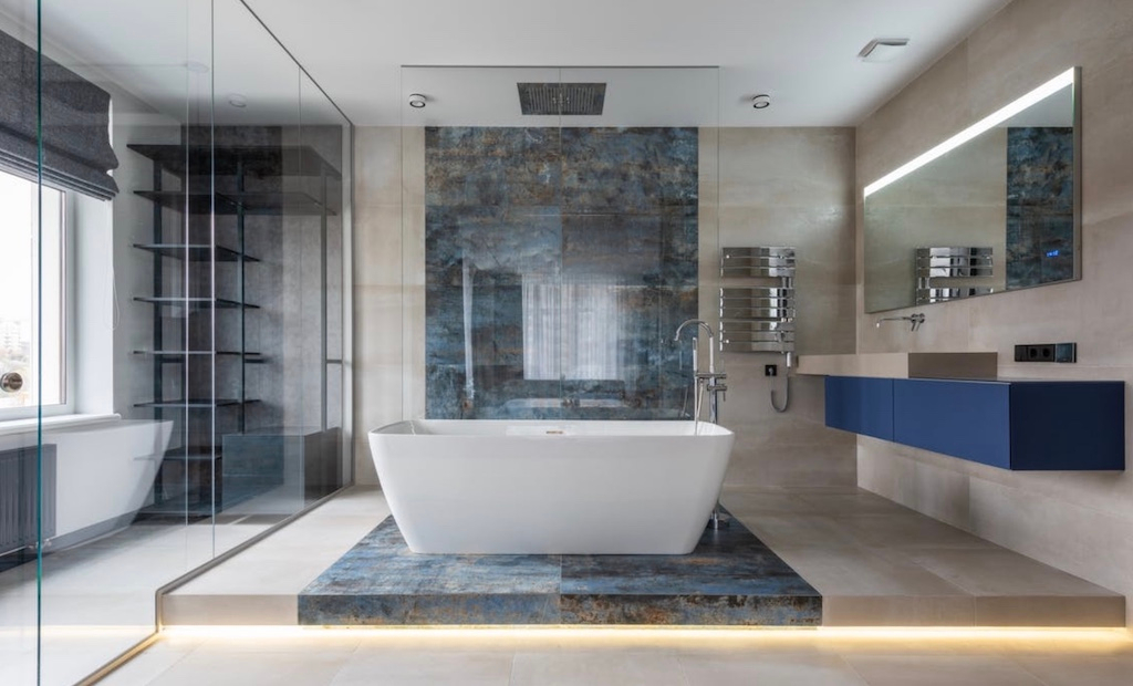 Whilst an excellent modern and contemporary bathroom will always prioritise natural lighting, if you don’t have enough of it, you can always make up for it with artificial lighting. Poor lighting is the enemy of any bathroom, and you can level it up with a few carefully chosen fixtures. Aside from having a central lighting fixture in the middle of the room, you can add spotlights or downlights in the corners, and you can even place a small lamp on your vanity to give your bathroom a nice, warm, and soothing ambience.