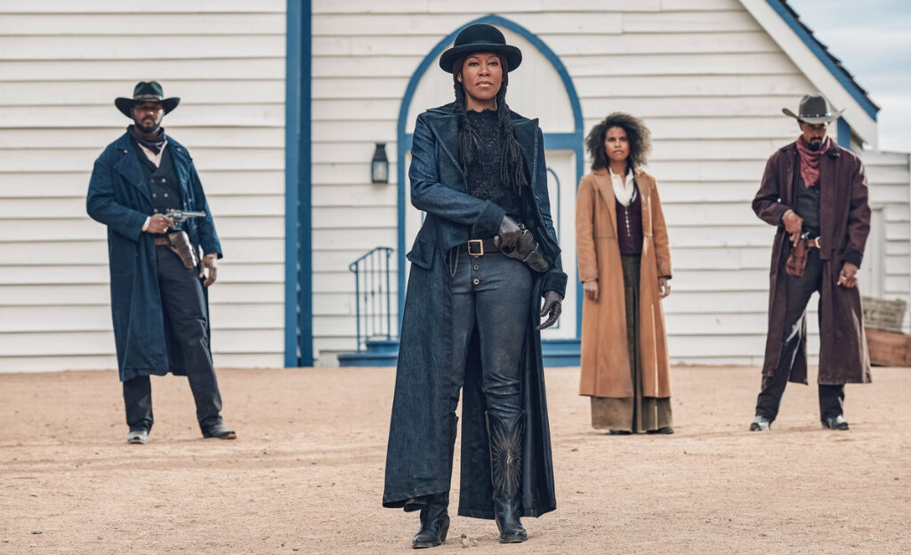 The feature-length directorial debut of British songwriter and filmmaker Jeymes Samuel, The Harder They Fall, tells a fictional story about real Black legends of the Old West. It follows Nat Love (Jonathan Majors), who reassembles his gang to take revenge on the outlaw who murdered his parents when he was just ten years old, the notorious Rufus Buck (Idris Elba).