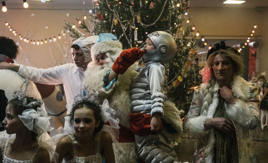 As the couple fight the flu and try to keep their sons away from it, in Petrov’s fevered mind they become violent vigilantes. Petrova stabs a man repeatedly as if it comes naturally to her; Petrov shoves an old man off a bus with ease (despite his health) for speaking inappropriately to a young girl. The narrative then shifts to a POV of Petrov as a young child when his mother brings him to a New Year’s Eve party for children and they meet a young actress. The audience is then launched into her story. The film emulates a stifling delirious dream, constantly switching from past to present through different perspectives, morphing reality with hallucination.