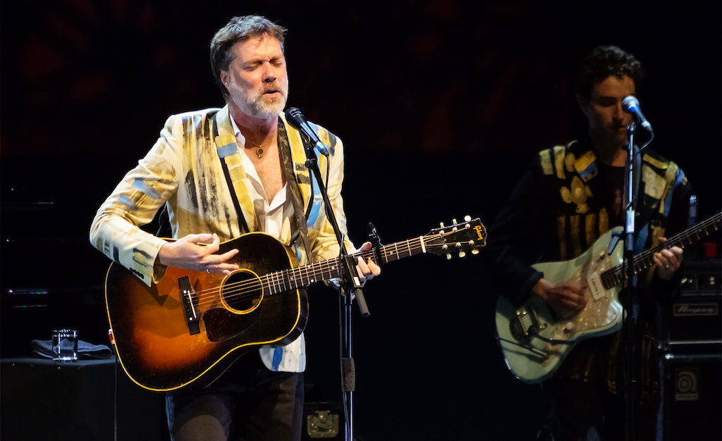 The burnished gold swags of ornamentation at the Palladium suit Rufus Wainwright perfectly. The multi-hyphenate (now artist can be added to that) swanned on stage last night in a customised blazer (with a crown and an R on the back, naturally) and bedazzled red shoes. His streamlined band consisted of Brian Green on electric and acoustic guitar, Jacob Mann on piano and keyboard and Alan Hampton on double bass and ukulele.
