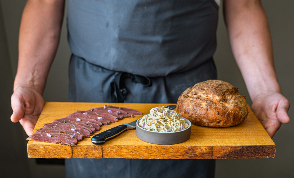 To start, we had the Seaweed Focaccia with Whipped Yuzu Butter. Easing us into the experience, this was the simplest of the dishes to prepare and just required the focaccia to be warmed in the oven, then served with the butter. Warm bread and proper butter is always a winner, and the dehydrated seaweed in this instance provided a pleasant twist.